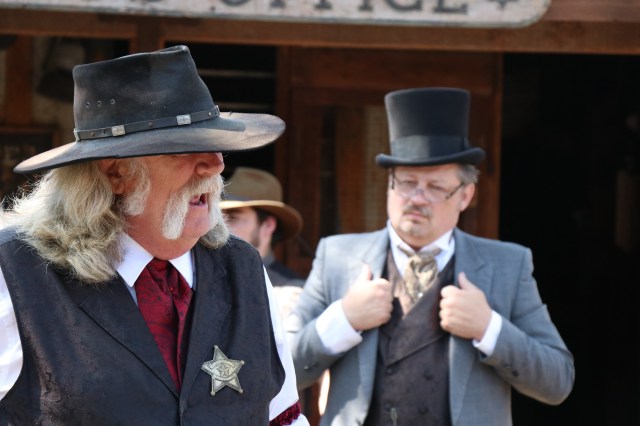 What I found very investing was everybody’s willingness to follow and listen to these characters. People unfamiliar with the intricacies of interactive theater may be off put but I never ONCE found an instance were someone was either shy, quiet or showed little interest. Everyone was tuned in and focused. They followed characters as they were instructed too and the group grew as we made our way from one location to another. I guess it’s human nature to want to be involved. This inevitably leads to large groups of people yelling and screaming about bandits, cowboys and hangings! What I found extremely smart was the involvement of existing Knott’s history with the story. In one instance, we noticed the famous Catawampus was missing from his location near the Liverly Stable! We spoke to many townspeople and they all informed us of the Catawampus Curse!