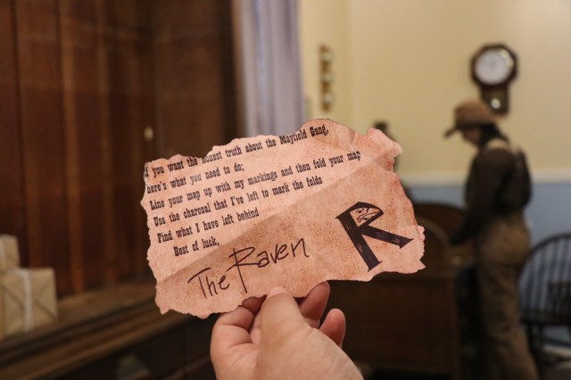 At GTA (Ghost Town Alive NOT Grand Theft Auto!), it was so easy to integrate yourself into the always changing storyline. I attribute this to the wonderful actors and actresses who bring it all to life. Each person so unique and interesting. Also the writing is superb! In one particular moment in the day, I found myself in the Bank trying to get information about some “mysterious” locked box in the towns vault. I was hot on the trail because of clues left behind by a person that went by the name, THE RAVEN!