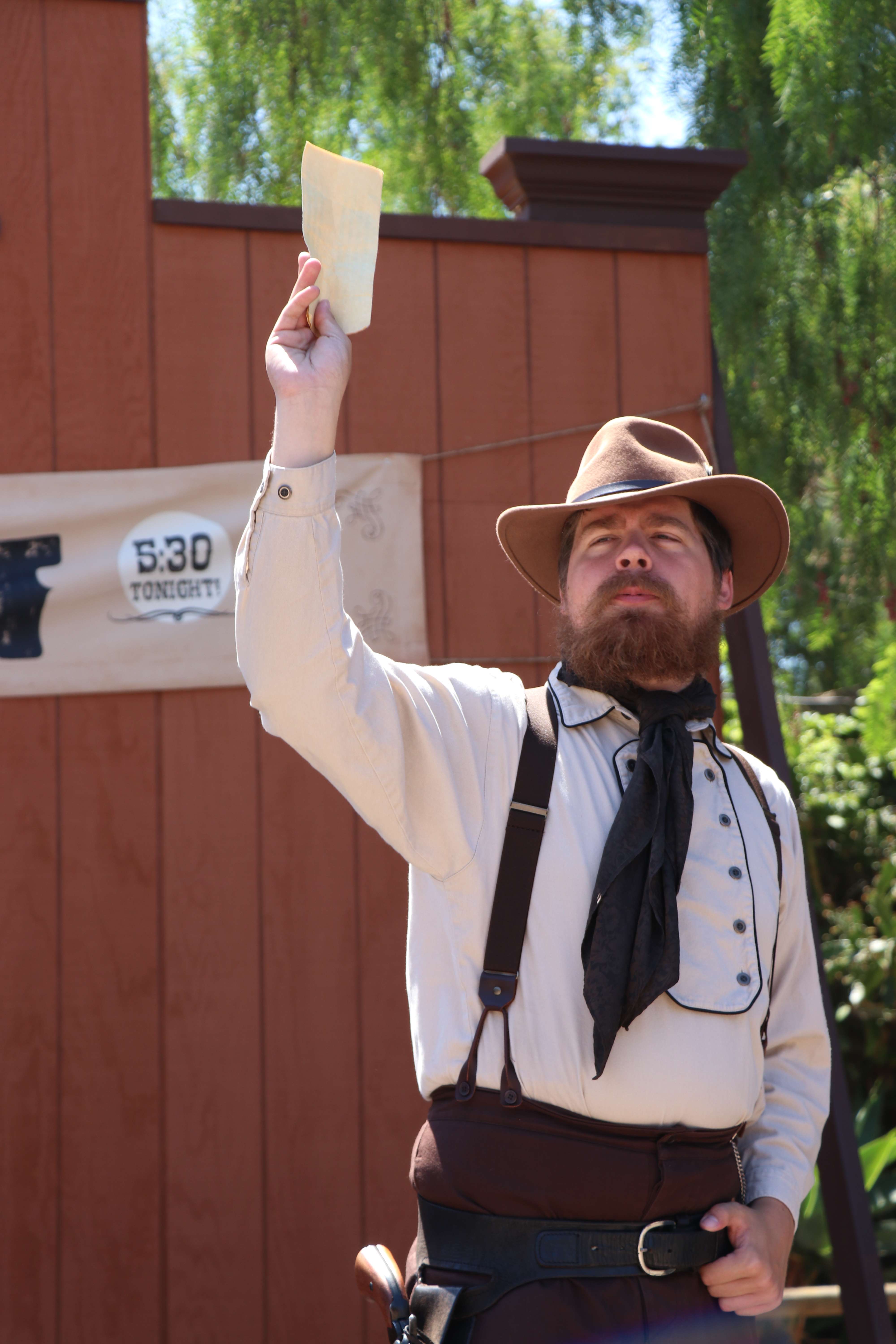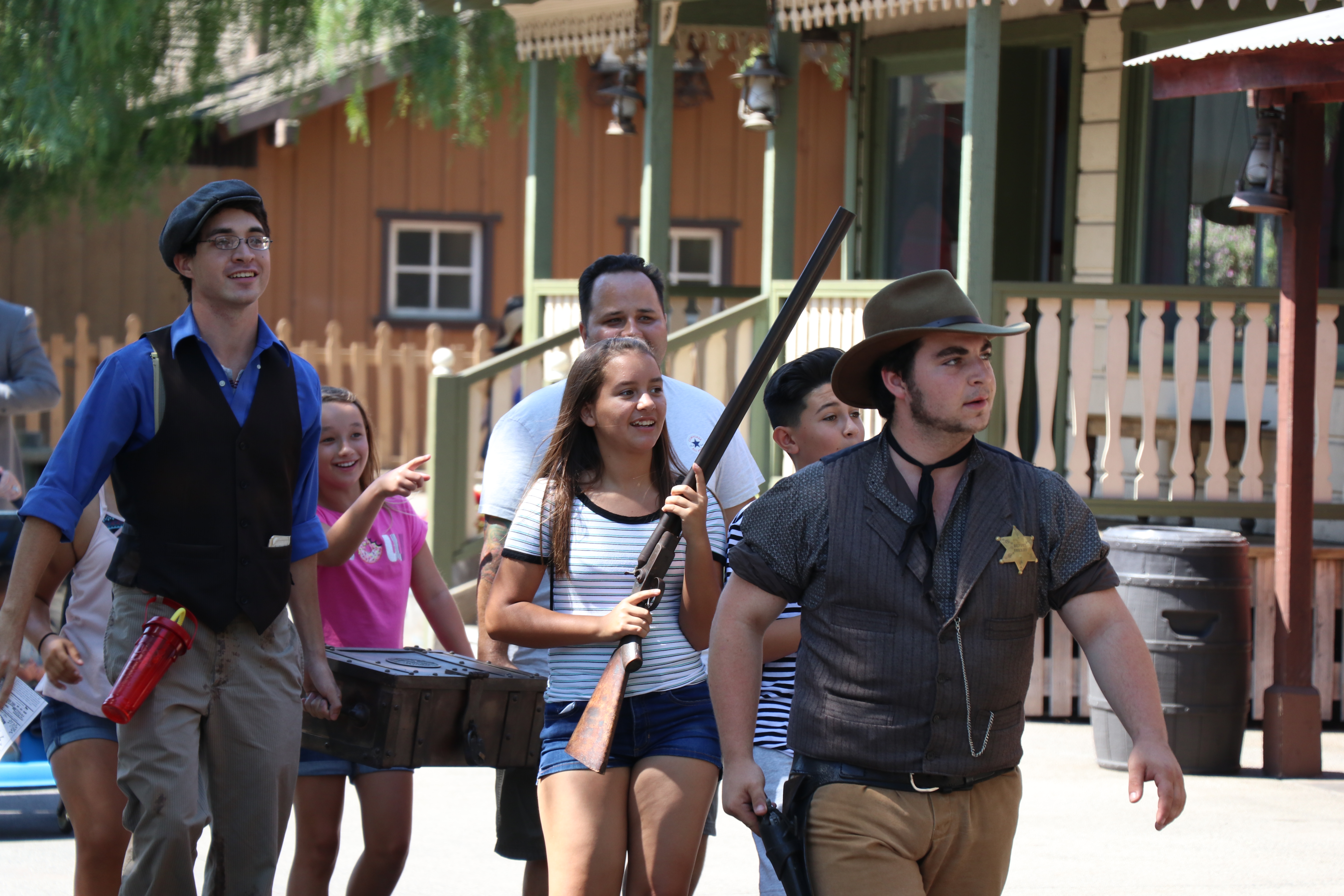 What I found very investing was everybody’s willingness to follow and listen to these characters. People unfamiliar with the intricacies of interactive theater may be off put but I never ONCE found an instance were someone was either shy, quiet or showed little interest. Everyone was tuned in and focused. They followed characters as they were instructed too and the group grew as we made our way from one location to another. I guess it’s human nature to want to be involved. This inevitably leads to large groups of people yelling and screaming about bandits, cowboys and hangings! What I found extremely smart was the involvement of existing Knott’s history with the story. In one instance, we noticed the famous Catawampus was missing from his location near the Liverly Stable! We spoke to many townspeople and they all informed us of the Catawampus Curse!