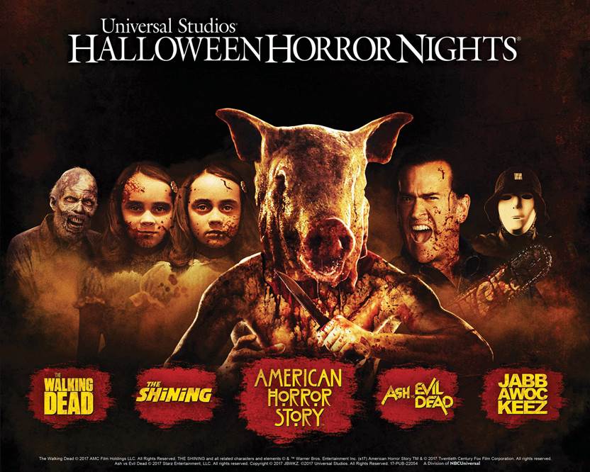If you want to be dropped in the middle of your favorite horror movie, Halloween Horror Nights Hollywood is the only destination for you! From the sick creative minds of John Murdy and Chris Williams comes some of the scariest characters that have graced the silver screen COME TO LIFE at this incredibly terrifying event! You’re no longer just watching the movie, you’re in it! Do not hesitate and buy your tickets today! Below are the scary details of Halloween Horror Nights Hollywood 2017! Find out about how The Shining will haunt you or how Ash might save you from Deadites in Ash vs Evil Dead!