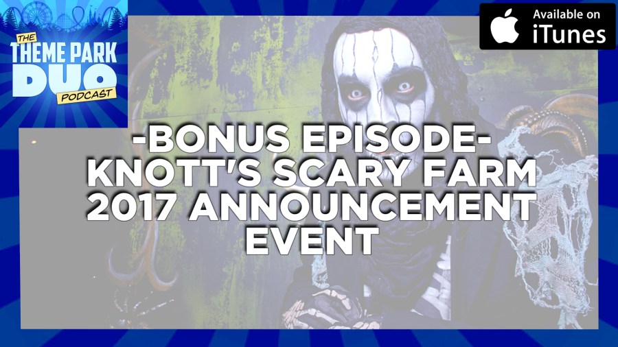 Knott’s invited The Duo to the Knott’s Scary Farm Announcement event and we got the scoop on all the spooky details that await everyone this coming Halloween season! We also got incredible interviews with Jon Cooke, Daniel Miller (Maze Designers) and Ken Parks the Director of Entertainment at Knott’s Berry Farm! In this episode we share our thoughts about the ALL NEW MAZES as well as the returning mazes for Knott’s Scary Farm 2017!