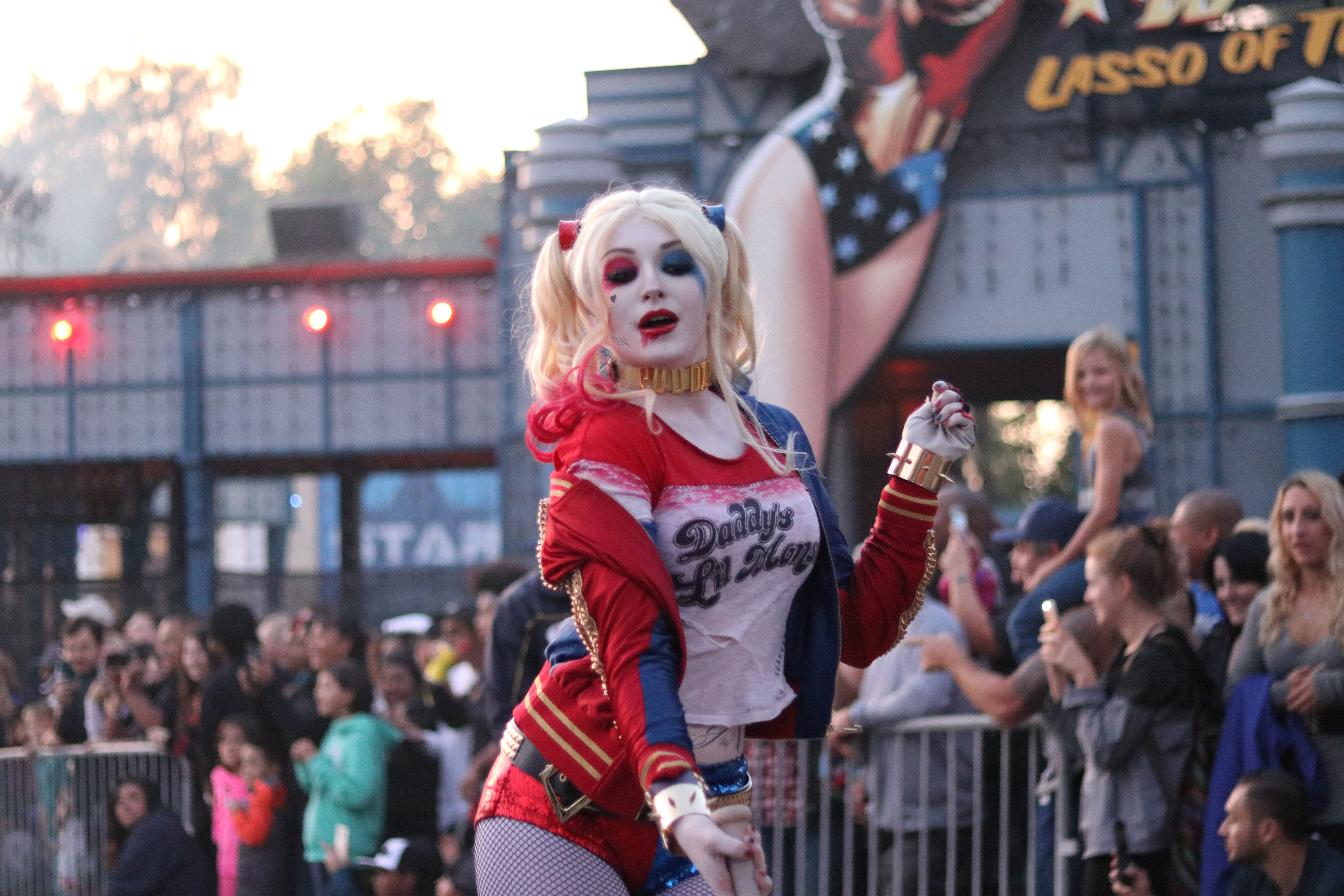 One special thing they do here, that they do not do anywhere else in the park, is have meet and greets! Now you may be asking yourself, why would I want to meet and greet a monster? Well they aren’t monsters, but the actually Suicide Squad characters themselves. Fans of these characters line up early and wait for a one on one interaction with their favorites. Last year, they had the same characters but one less it seemed. We did not see Killer Croc at all while we were there, maybe he will show up later in the season.