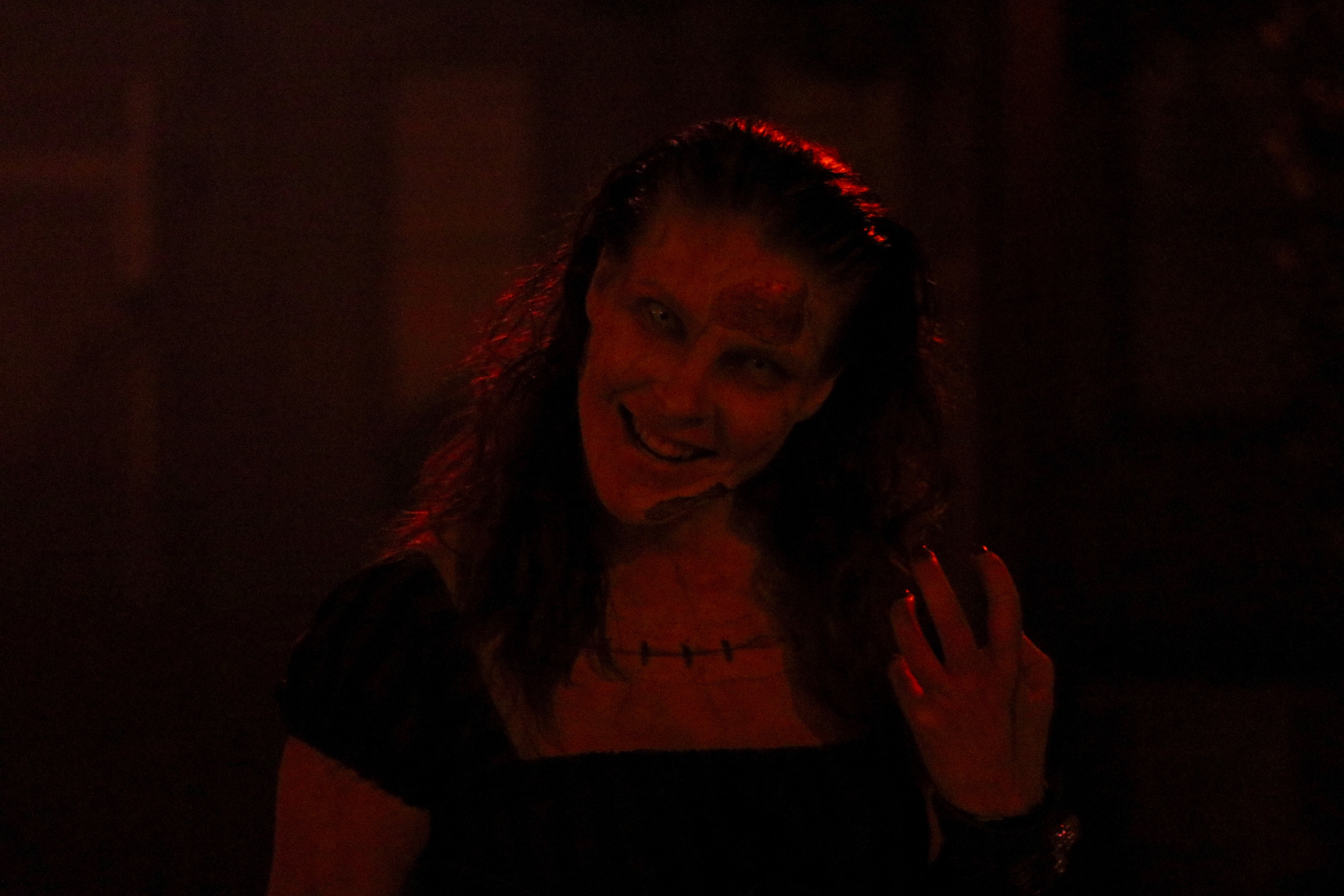 In this scare zone lives one of my favorite scare actors at any haunted event, Innocence! (Pictured Below) She is incredible in so many ways. Menacing, terrifying and scary all without resorting to any typical scare tactics. She quietly and slowly walks towards her victims and they always react. People are so unnerved by her silence and slow pace that they tend to race far away before Innocence gets anywhere close to them. No other monster has that type of impact on their victims….guests.