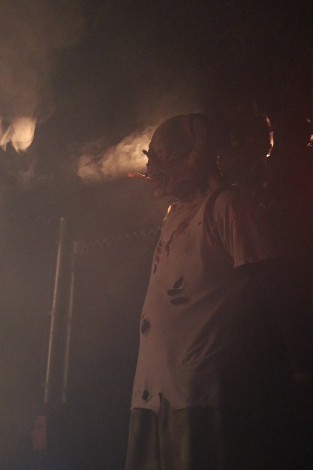 This is based on a classic story that everyone is familiar with, Little Red Riding Hood. But she isn’t so little anymore. We love when haunts take familiar bed time story or fairy tales and bastardize them so they become twisted and disturbing. Out of the three mazes in this area, this has to be my favorite! I love the concept, the idea and the execution. One room in particular that stands out is a tunnel you have to walk through with Red Riding Hood herself above you! It’s rather epic and gives the character a moment so guests can see her, because she is the main character of the maze. I was in the back of the group for this maze and got scared so many times! The talent was killing it!