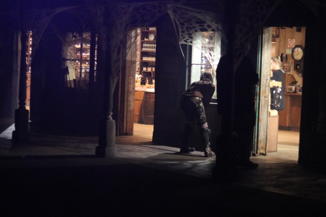 Absolutely love the stilt walkers in this scare zone. You can’t tell but the photo below is of a stilt walker. Just look at his head in relation to Supreme Scream!