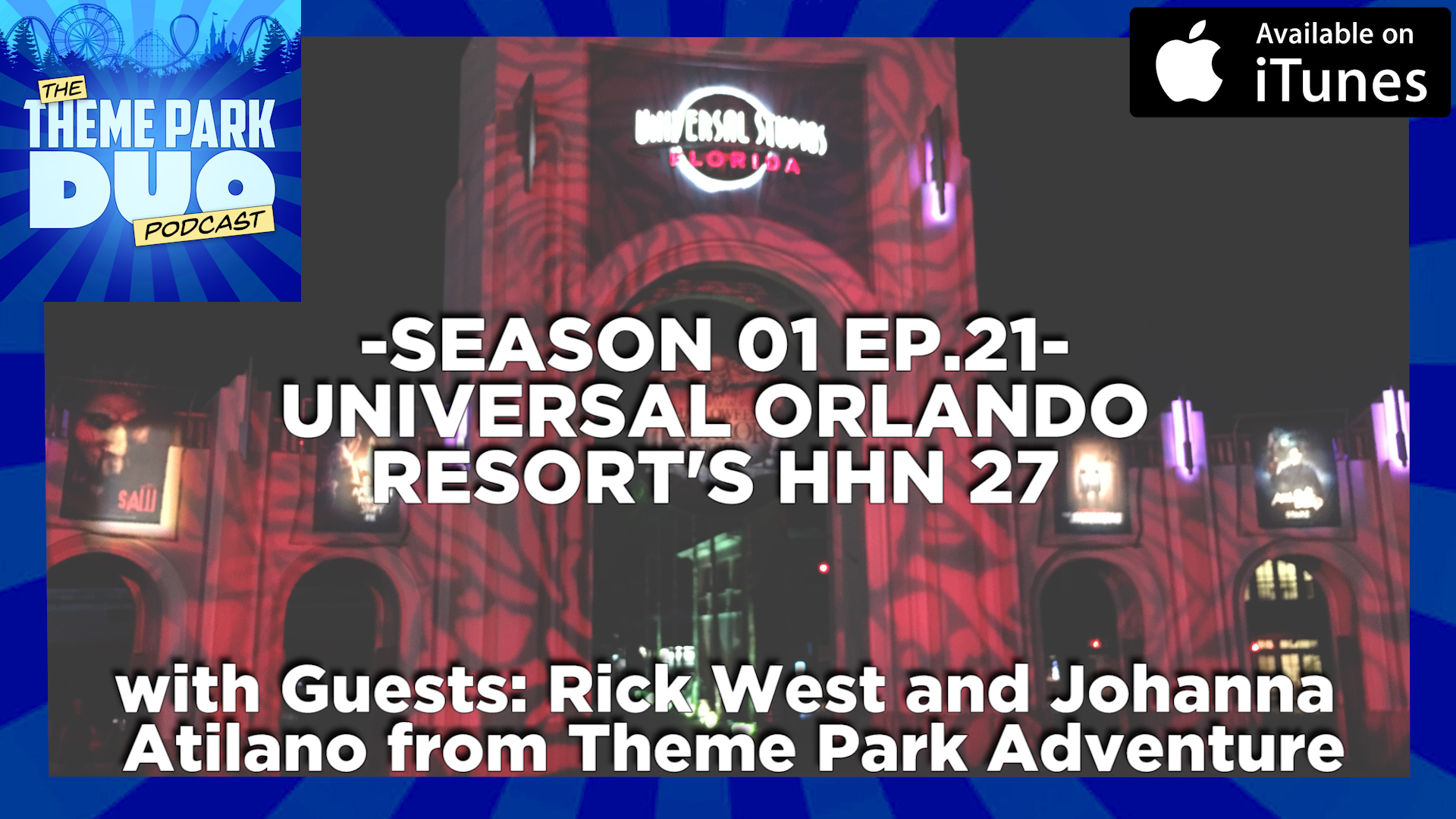 The Theme Park Duo flew across the country from California all the way to Orlando Florida to attend one of the biggest Halloween events in the country! We got to attend Universal Orlando Resort’s Halloween Horror Nights 27! This was such a different experience for us since we are use to HHN Hollywood. One major difference being the original houses they have at the park! Lucky for us, we were able to cross paths with our good friends Rick West and Johanna Atilano from Theme Park Adventure and Midsummer Scream. This was their first visit too so why not bring them on the show to chat about the event!