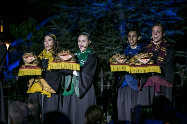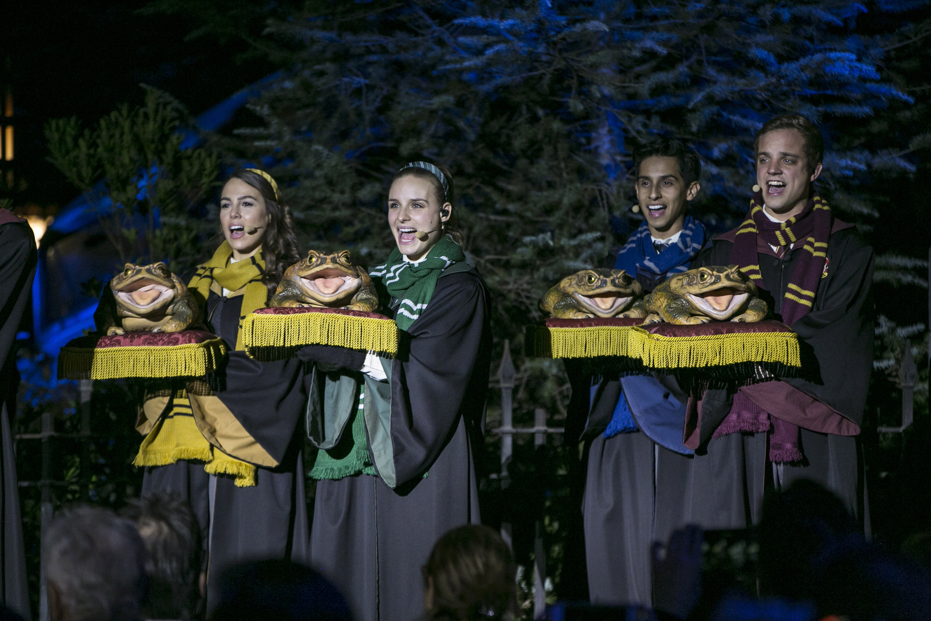 As night falls on Hogsmeade village, the familiar sounds of Harry Potter music will resonate throughout “The Wizarding World of Harry Potter.” Multiple times an evening, colorful projection mapping will illuminate Hogwarts School of Witchcraft and Wizardry with “The Magic of Christmas at Hogwarts Castle.” The a cappella Frog Choir, comprised of Hogwarts students and their giant throaty frogs, will also perform original holiday themed songs over the course of the seasonal event.