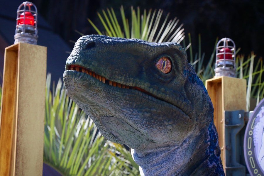 The imposing life-like creature is Owen’s beloved Velociraptor from Jurassic World and Jurassic World: Fallen Kingdom and was brought to life for the “Raptor Encounter” employing the exact computer-generated model and images used to create her for the big screen.