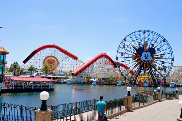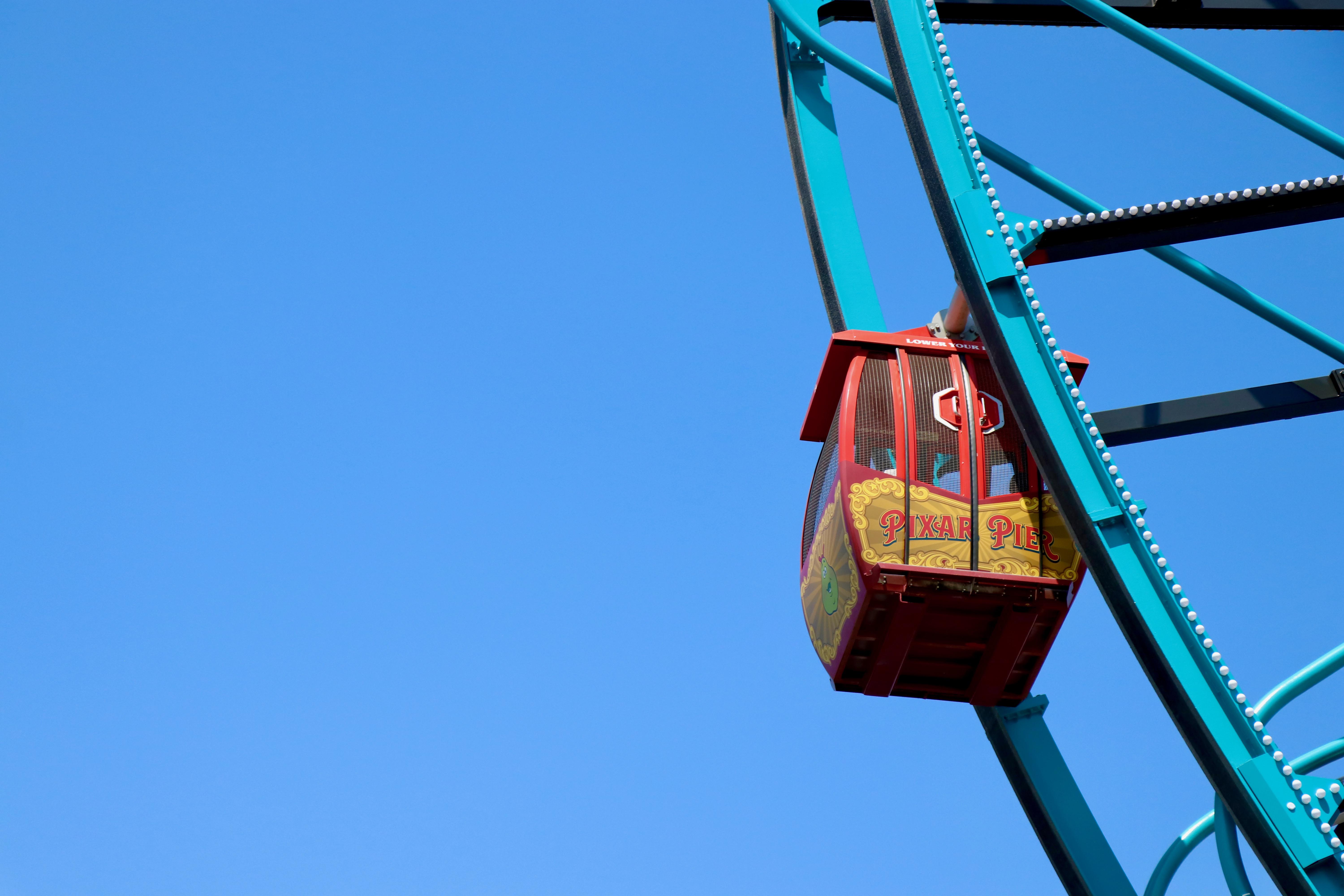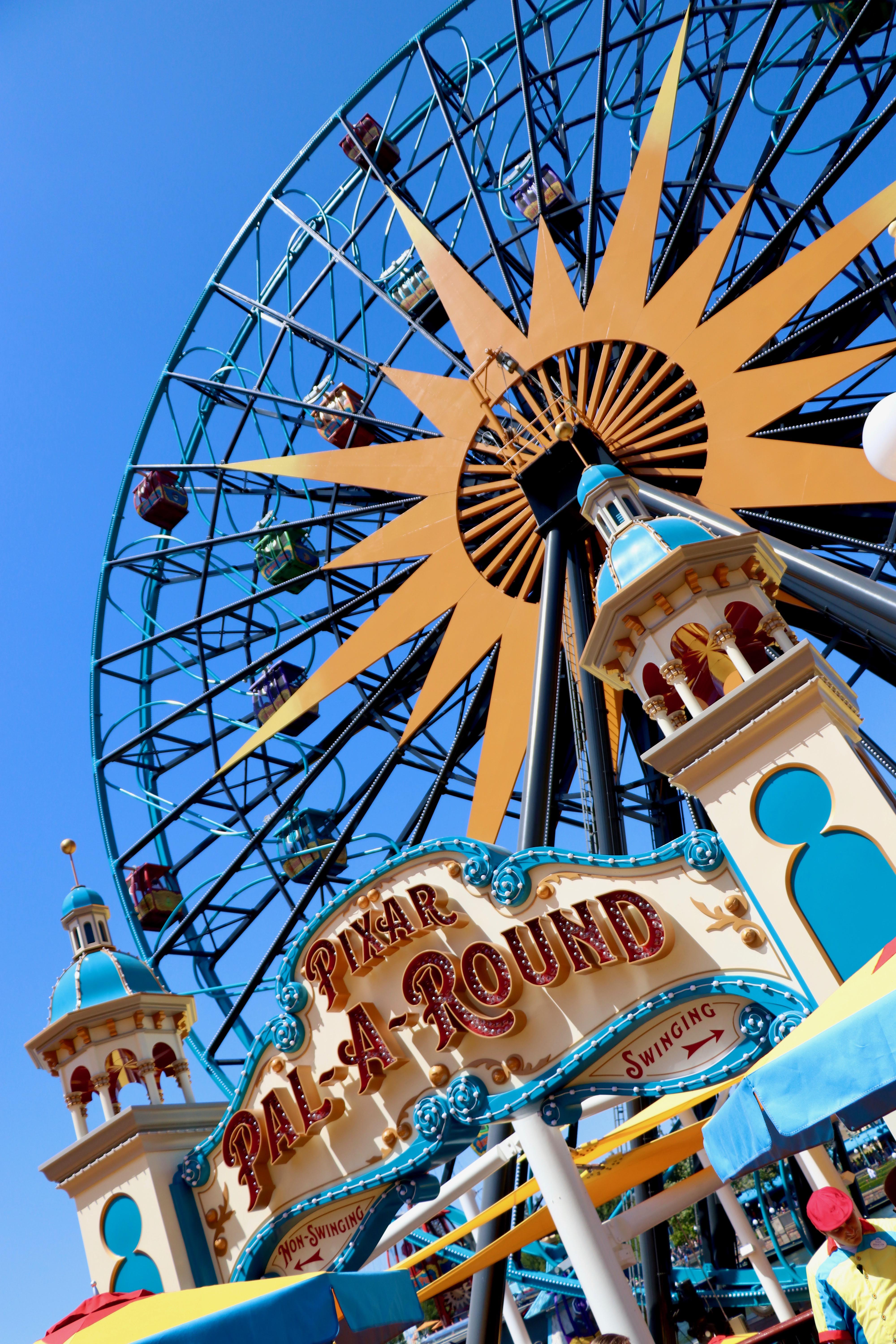 Right off the bat, we didn’t like the new view across the water. We lost some elegance that Paradise Pier had, and gained some ascetically loud changes. The bright red tubes, with the blue Mickey’s Fun….*clears throat* I mean The Pixar Pal-A- Round, in general, feels like an eye sore.