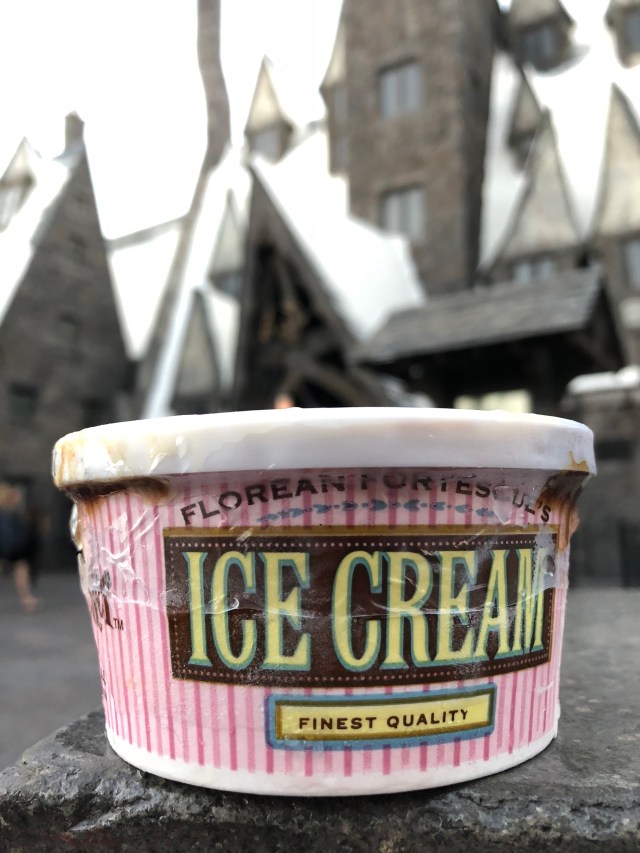 Butter Beer Ice Cream has magically appeared at Universal Studios Hollywood along side the Nighttime Light at Hogwarts Castle show. As huge fans of the Christmas light show at Universal Studios Hollywood, we were extremely excited to FINALLY view this show. Unfortunately the last time the show was being offered, we didn’t get a chance to see it. As Harry Potter fans, this made us extremely sad. But that has all been lifted away, as if Hermoine herself said “Wingardium Leviosa” and everything was better in the world.
