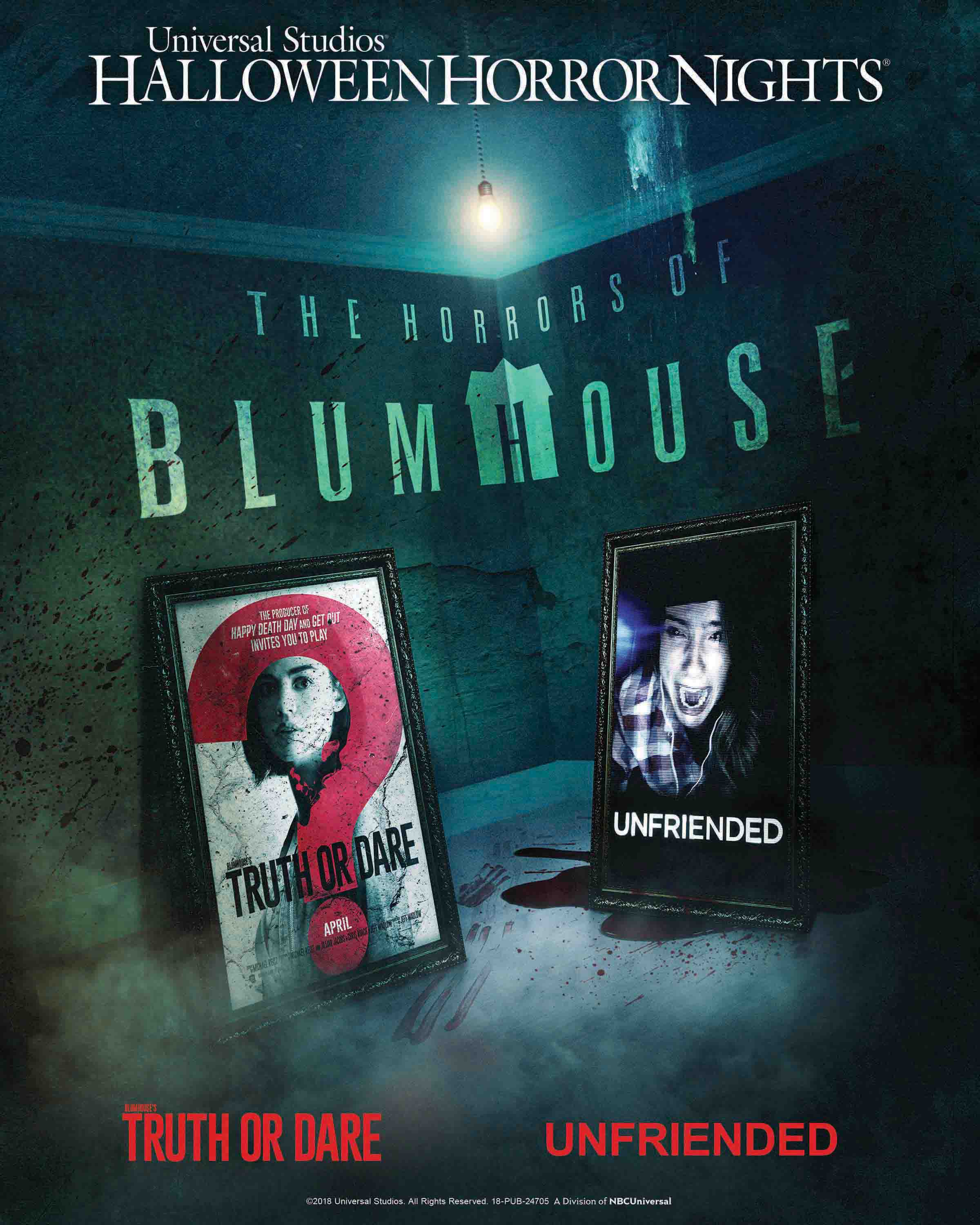 At Universal Studios Hollywood, “The Horrors of Blumhouse: Chapter Two” maze takes guests on a terrifying journey that begins at the entrance to a dilapidated movie theatre, where a compilation of horror films play out in real life. In Blumhouse’s Truth or Dare, guests will succumb to an ancient curse that has been unleashed by a group of unsuspecting college students….forcing them to play a game where the stakes are life and death. In Unfriended, guests become pawns to a supernatural entity that has invaded a chat room. Drawing inspiration from Blumhouse Productions’ infamous opening title sequence, the final feature will lure guests into a creepy old house to answer desperate cries of help…only to discover that they have actually entered a paranormal world where real-life nightmares threaten to trap them forever in misery.