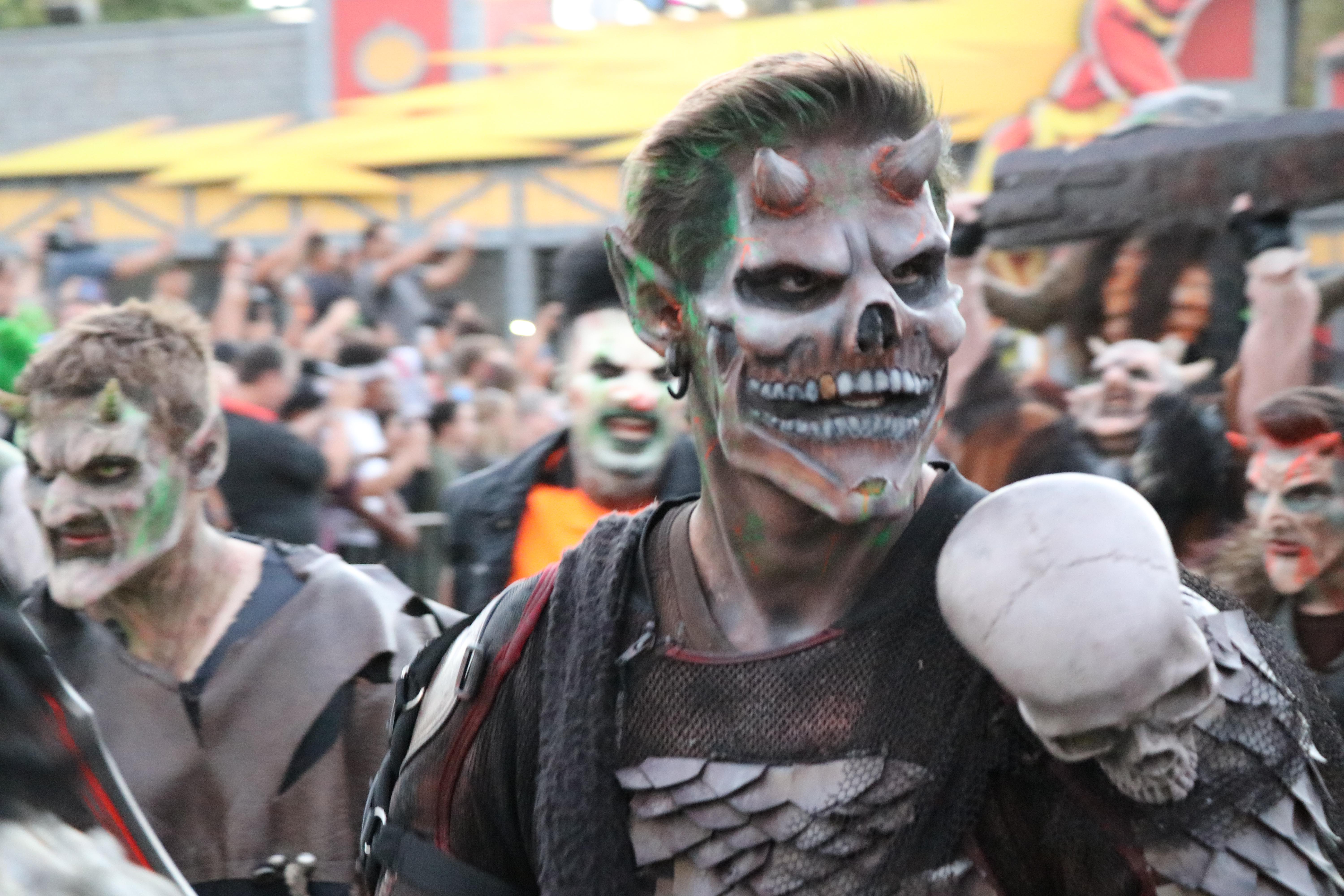 The scare actors take their craft extremely seriously (the same in all the zones) and you can feel the difference. They have even given themselves demon names! When visiting Fright Fest, you might hear the names: Irascantur, Demonia, Mortem, Baby Demon and many others while venturing through this scare zone. I find when scare actors take their make up and flesh it out into their own characters, it really brings scare zones to another level. Truly bringing characters to life, instead of just simple monsters scaring people.