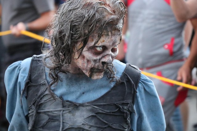 This type of concept for a maze allows a lot of latitude when it comes to scenic design. The apocalypse doesn’t have any particular look or feel, so the designers take it upon themselves to build what they believe it would look like. Piles of rubble, burnt and crashed cars, fire effects and mutated creatures. Everything added together really helps build a sense of urgency and panic; especially the loud fire effects.