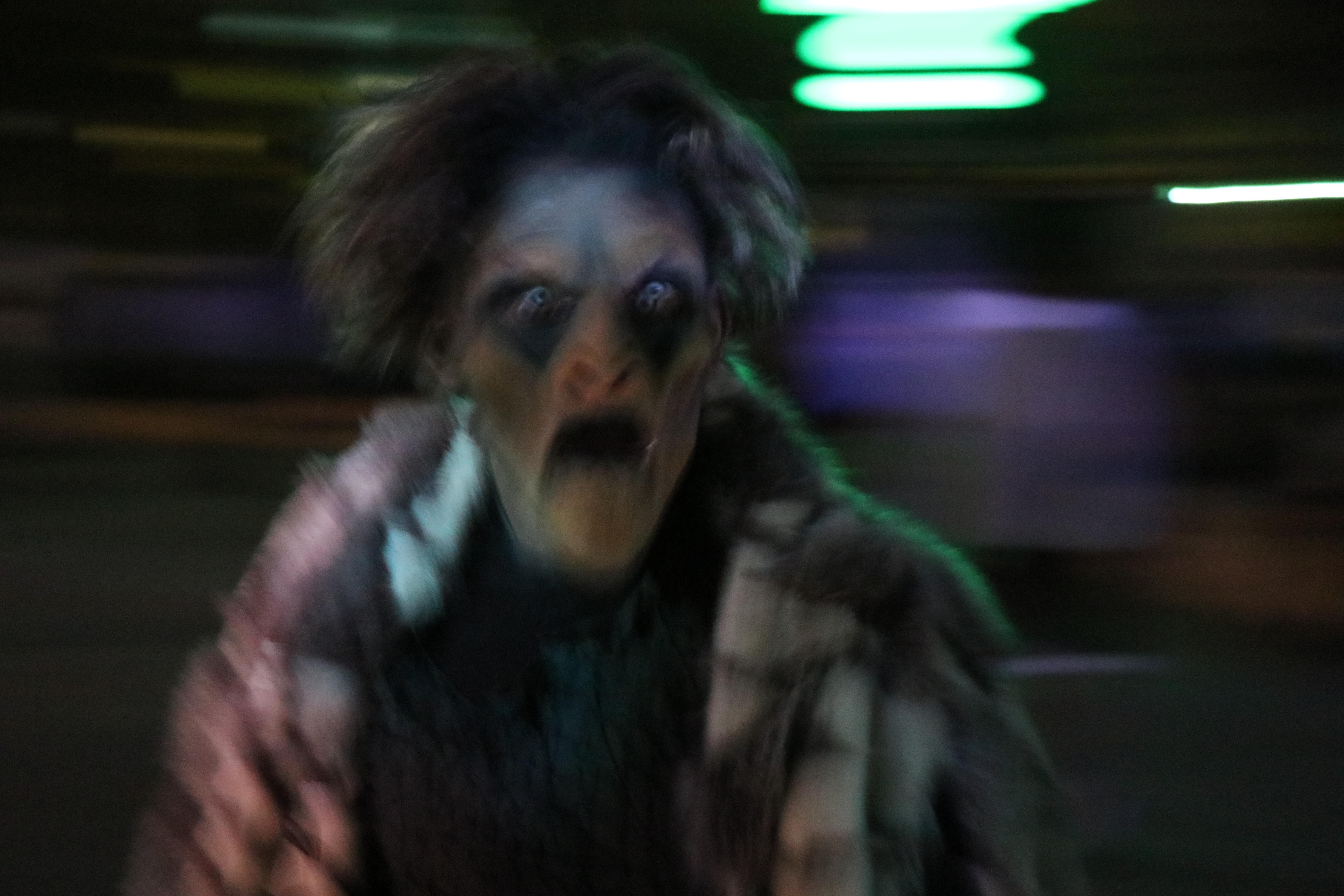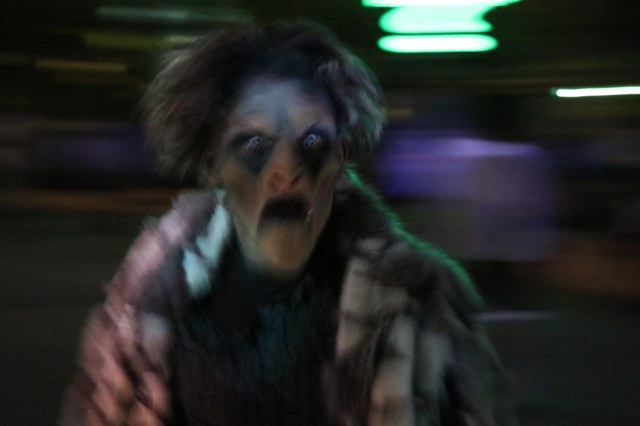The monsters in this scare zone are moving around so fast that it’s impossible to take a photo of them in their naturally dark habitat. Even Innocence and her slow walk are sometimes hard to photograph because of the fog.