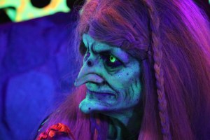 In the center of the scare zone was a small structure built so guests can enter and wander around, allowing monsters to hide behind corners and wait for the guests to come to them! I know this year and in the past, we’ve complained about Halloween Horror Nights doing something similar to this. The one major difference between this and Horror Nights is that there are multiple paths to take in Witches Lair. You are not forced to walk in one path the entire time and if you choose to reenter the structure, then you can do so anywhere around its perimeter. With Horror Nights, you have to walk all the way to the beginning! The free form nature of this really allowed for a ton of scares to occur and there was no shortage of people screaming and literally running as far as possible from the witches and other monsters that inhabited this area.