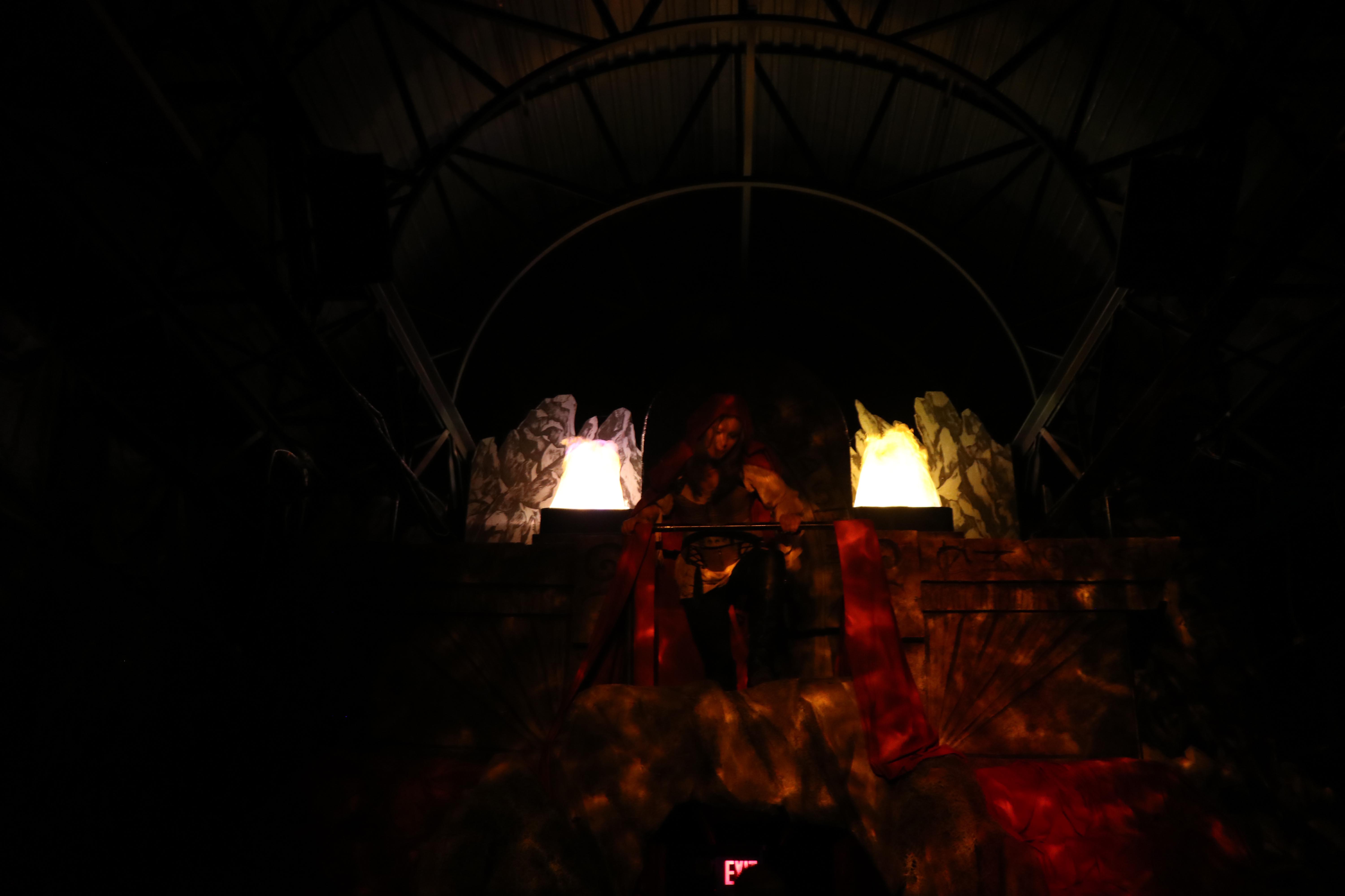 Also new for 2018, Witches Lair takes the place of Damned and Disguised: Change Before Your Eyes; which was in front of The Justice League Ride. Our problems with Damned and Disguised was the lack of props for scare actors to interact with as well as break up the swarms of people.