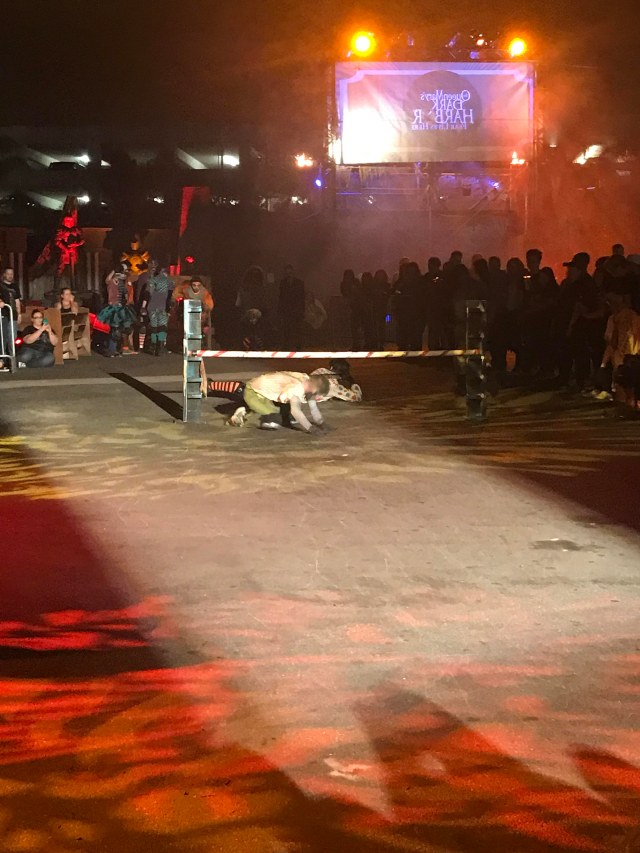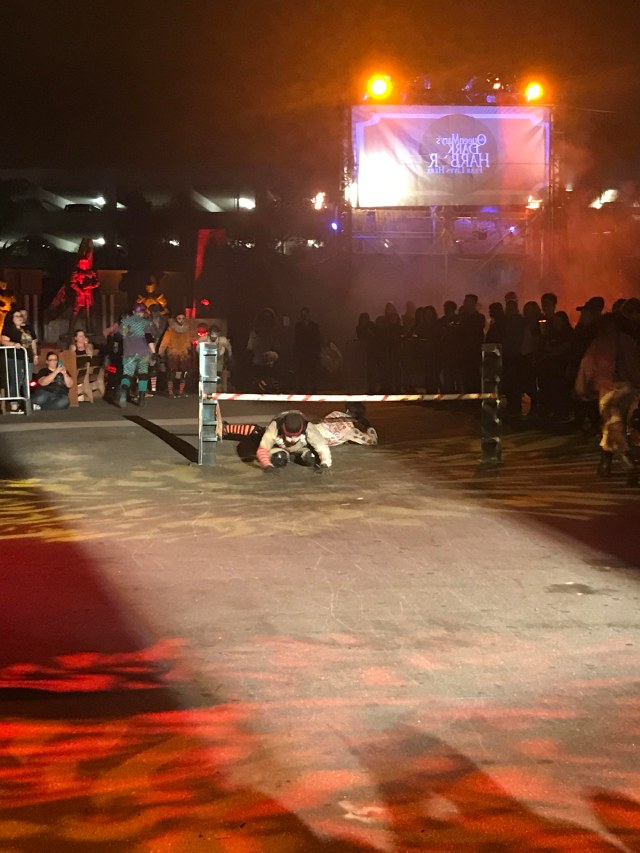 I have to admit that I never make it a priority to watch live shows at Halloween events. My main focus is the mazes, followed closely by the scare zones. Despite this, I really enjoyed the small sideshows offered at this year’s Dark Harbor. The event offers numerous shows including Slider Alley, Aerial Ring, The Pyre fire breathers, Monster Dance Party, PANIC: 4-D Theater experience, DJs and more.