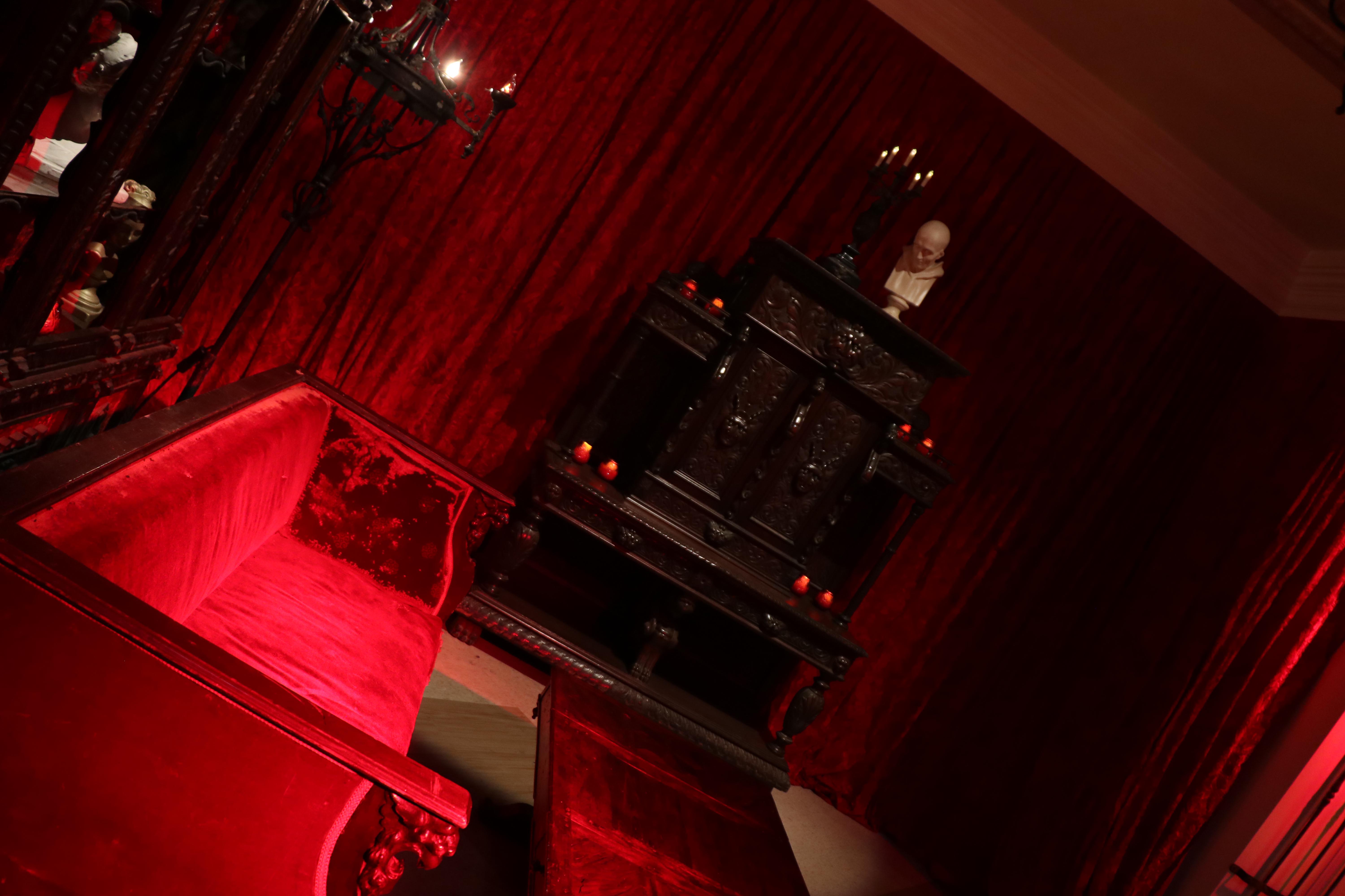 Bathed in red light, the entire bar is a Halloween treat for the eyes. Gothic style furniture sits within this stylized bar that (I was told) does justice to the show. Throughout the event, you can find beer, wine and other interesting drinks at stands. But why go to those when you could come here and have a themed experience all your own.
