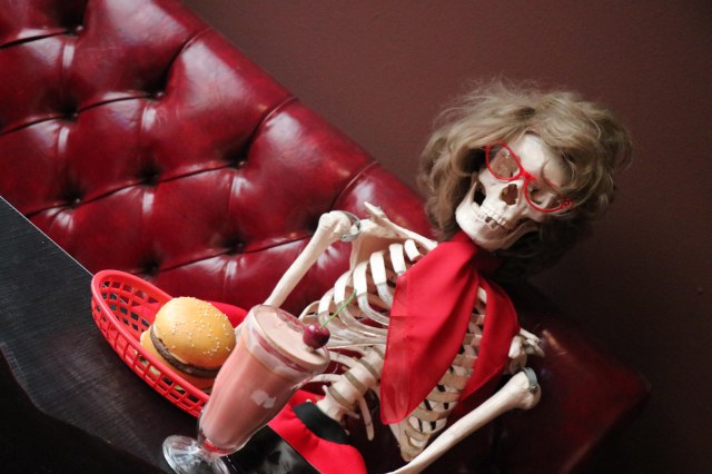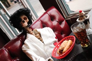 We simply giggled with delight to see these morbidly funny scenes depicted within the cafe.