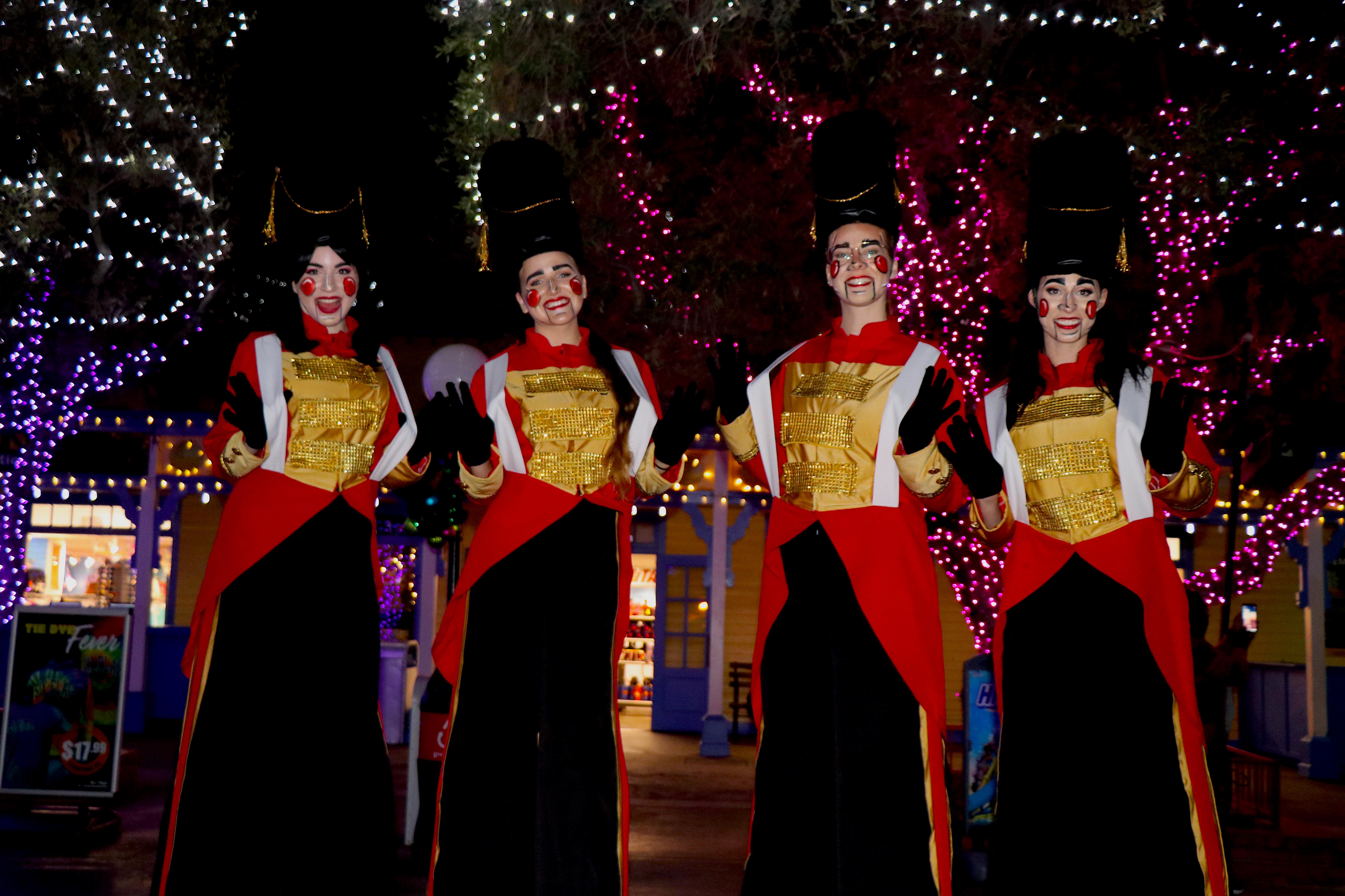 Outside of the light shows and characters in each area of the park, there is a ton of entertainment offerings each night of Holiday in the Park. Over by Full Throttle, you will find the Full Throttle Snowy Nights Stage. Acts like: The Mistletones, Tinsel Toy Dancers, DJ and percussionist can be found here churning out their versions of holiday favorites during a contemporary show.