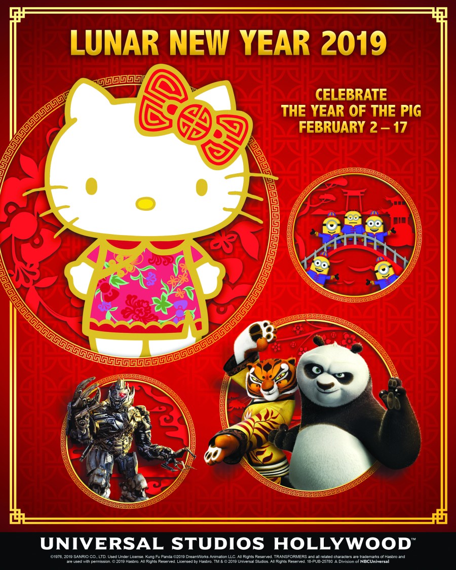 Universal Studios Hollywood ushers in the “Year of the Pig” as the movie-based theme park celebrates Lunar New Year with uniquely-themed programs featuring beloved global pop icon Hello Kitty, DreamWorks’ Kung Fu Panda masters Po and Tigress and a Mandarin-speaking Transformer’s MEGATRON from Saturday, February 2 to Sunday, February 17, 2019.