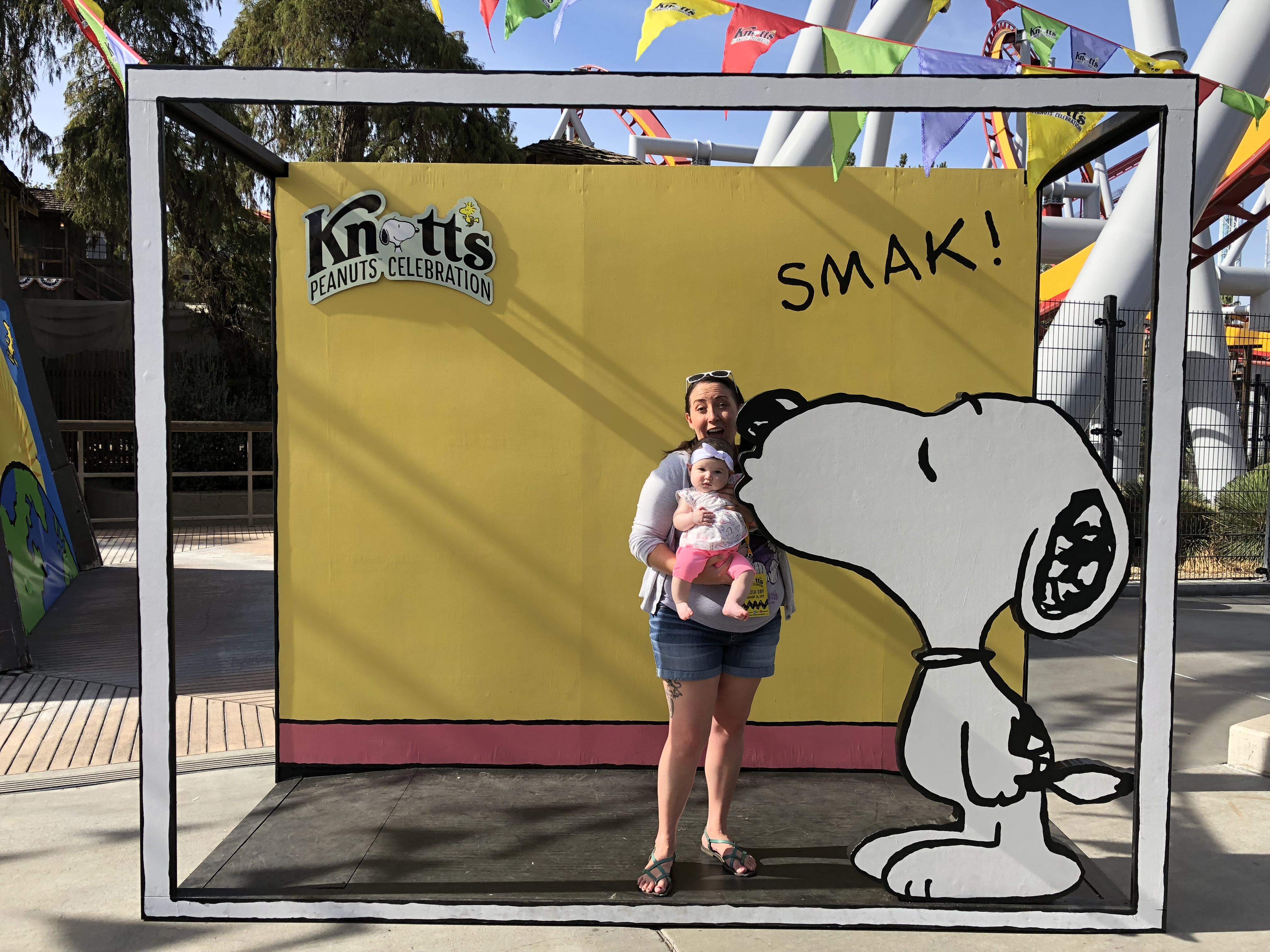 Everywhere you look in the park, the Peanut’s celebration is in full swing! And this Celebration was especially special for this Duo, since it was the first Knott’s event that we were looking at through the eyes of our Daughter. We viewed the Beagle Bonanza with fresh eyes as the Grand Sierra Railroad officially became Eireann’s first theme park ride EVER! But we are getting ahead of ourselves here, let’s start at the beginning!