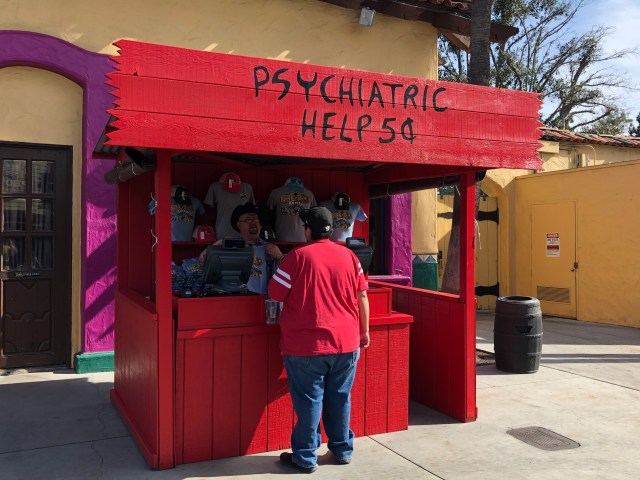 The merchandise booth even looks like a giant version of Lucy’s red Psychiatrist booth. We absolutely love the photo ops and details at the entrance of the park, it truly sets the tone for the rest of your day.