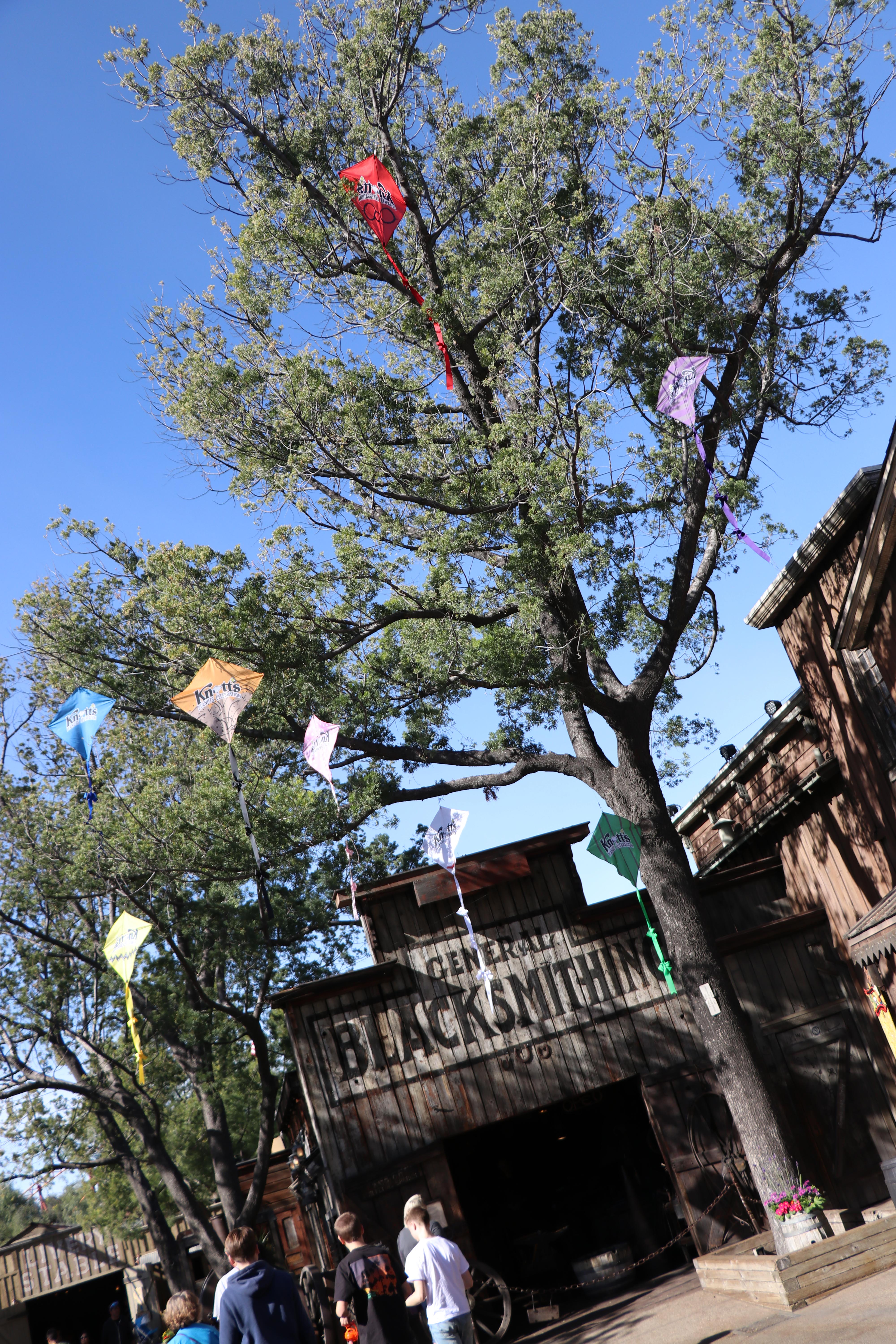 As you make your way down ghost town, it is impossible to miss all of the kites that have been gobbled up by the trees. It’s details like these that makes this event so fun and whimsical! And if you look closely, you can see that each kite is themed to different Peanuts characters.