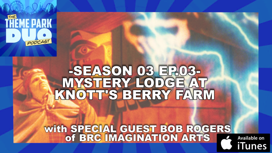 On this episode of the Theme Park Duo Podcast, The Duo talk about one of their favorite attractions…MYSTER LODGE at Knott’s Berry Farm. We were lucky enough to have a chat with Bob Rogers of BRC Imagination Arts, the man behind the attraction itself. Learn about the story behind Mystery Lodge, how it came to be and why it was called Spirit Lodge before it came to Knott’s Berry Farm and was in the hands of Disney! All of that and so much more regarding the fabulous attraction…Mystery Lodge.