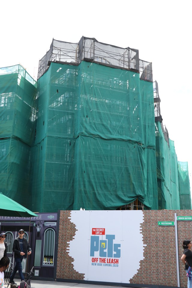 The Secret Life of Pets: Off The Lease (coming 2020) seems to make major progress each time we visit the park. It is the most notable piece of construction since it sits right on the upper lot and now keeps guests from using Baker Street as a way to approach Minion Mayhem.