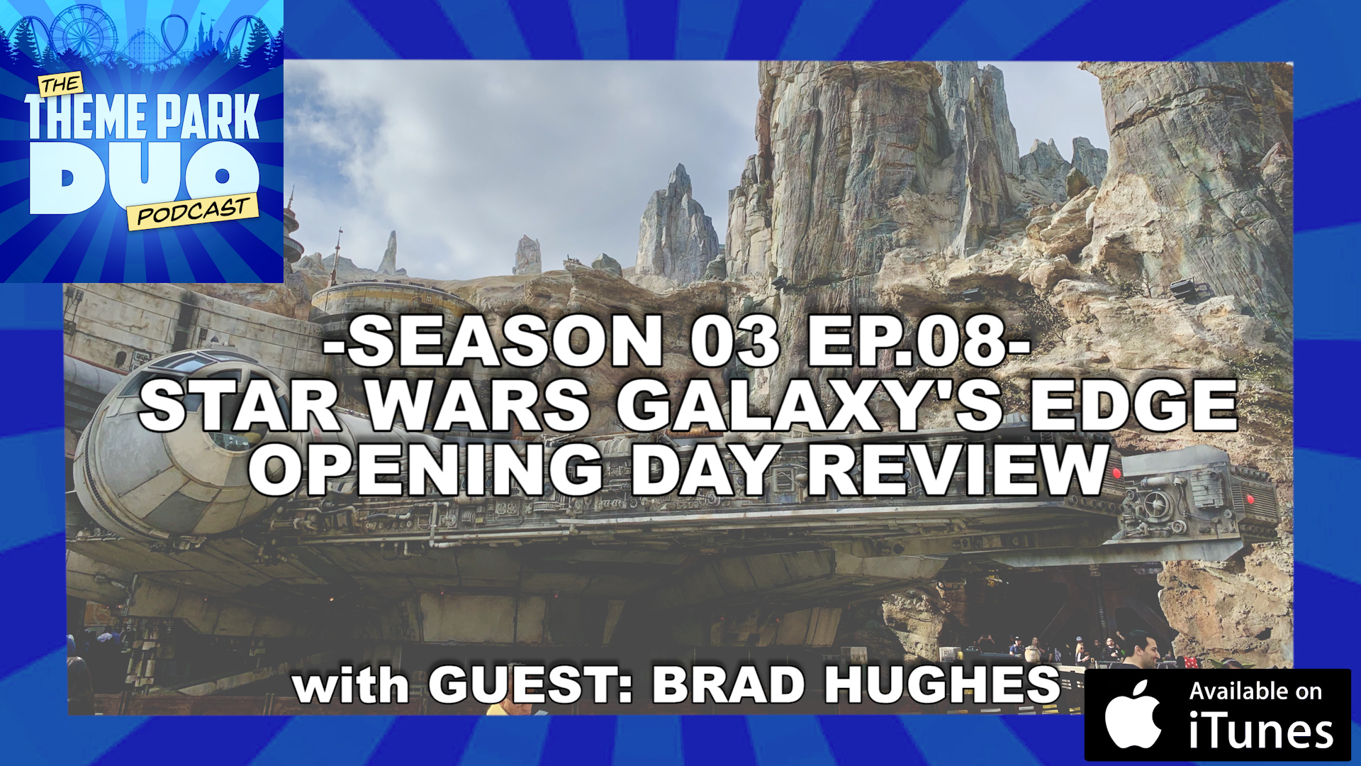 On this episode of the Theme Park Duo Podcast, Nikki takes a break while Gabe is joined by Brad Hughes (Views with Hughes) to talk everything Galaxy’s Edge at Disneyland in Anaheim, California. Brad was able to procure two separate reservation spots to visit Batuu and he has travel back from across the galaxy to inform us what to expect when visiting. From Dok Ondar, Millenium Falcon: Smugglers Run, and Blue Milk; Brad has the coverage for everything you need to know about the BRAND NEW land added to Disneyland and soon Walt Disney World. Does Galaxy’s Edge (Star Wars Land) live up to the hype? Or will it’s hyperdrive fail? Listen and find out!