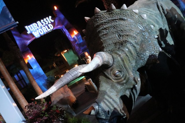 On July 22nd, Jurassic World: The Ride at Universal Studios Hollywood had it’s star studded opening ceremony! The night started with an unsuspecting visitor who seemed to be just a tad too hungry to realize the large group of people patiently waiting for the show to begin.