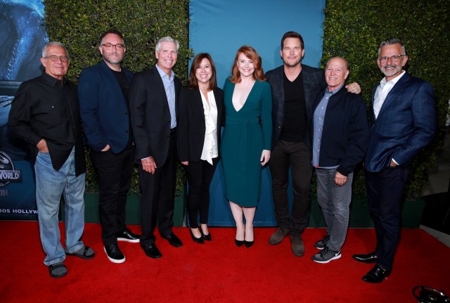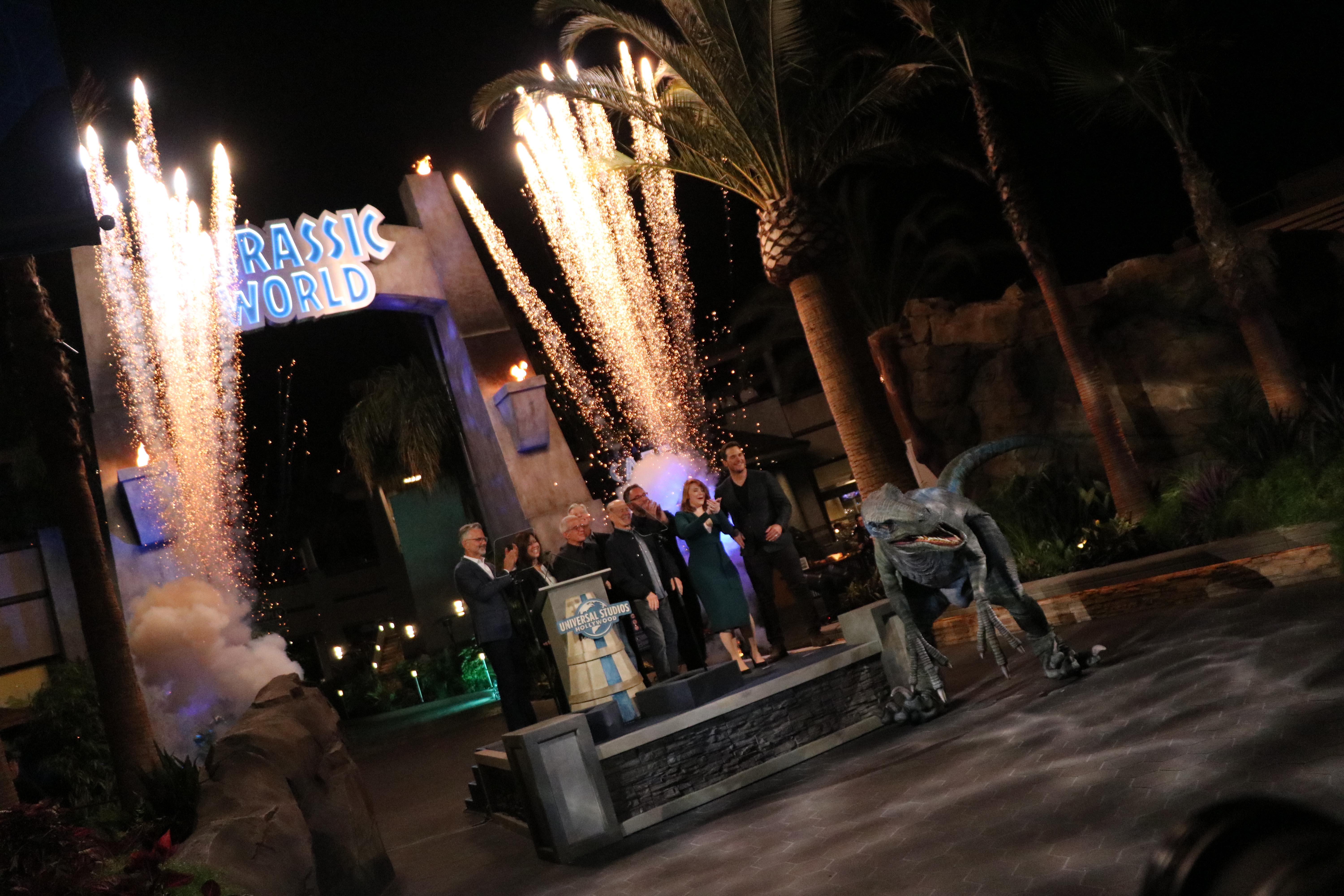 The two main stars of the franchise, Bryce Dallas Howard and Chris Pratt joined the festivities along side: Colin Trevorrow (Director of Jurassic World), Frank Marshall (Producer of Jurassic World), Ron Meyer (NBCUniversal Vice Chairman), Karen Irwin (President & COO of Universal Studios Hollywood), Tom Williams (Chairman & CEO of Universal Parks & Resorts), Mark Woodbury (Vice Chairman Universal Parks & Resorts, President of Universal Creative) and Jon Corfino (Sr. Director & Executive Producer of Universal Creative).