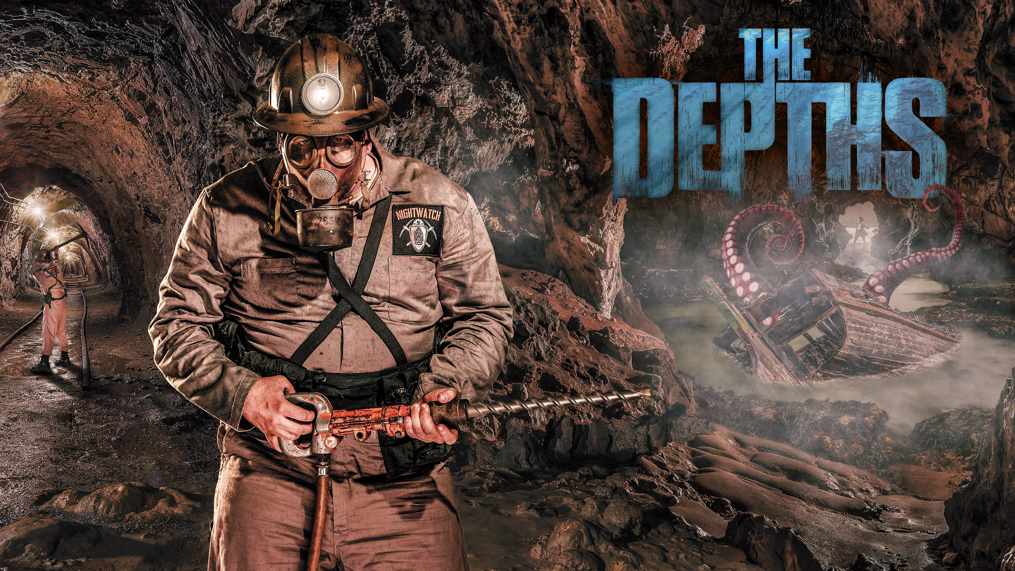 The Depths – A heavy fog drapes over an abandoned port village where ancient creatures lurk inside the pitch-black underground caves hidden below the seaside shores. The Nightwatch Mining Crew has mysteriously disappeared and village rumors point to the eerie tunnels the town sits upon. Myths of the terrifying horrors that lurk within the cave have often been whispered but never confirmed. Did the crew meet their demise at the hand of vicious creatures that live within the cave? Journey into the ominous caverns to discover if the superstitions revolving around the cave is true or not. But be warned all who have entered have never resurfaced.