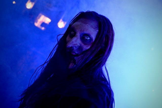 The quintessential scare zone of Fright Fest (in our opinion)! Exile Hill is dark, fog filled and completely packed with extremely talented monsters. We liken this scare zone to GTS at Knott’s Scary Farm. As you enter each plume of fog, you are hit by a monster on the other side. They can see you but you can’t see them! This is also home to the talented Innocence Willoughby! SHE IS TERRIFYING!