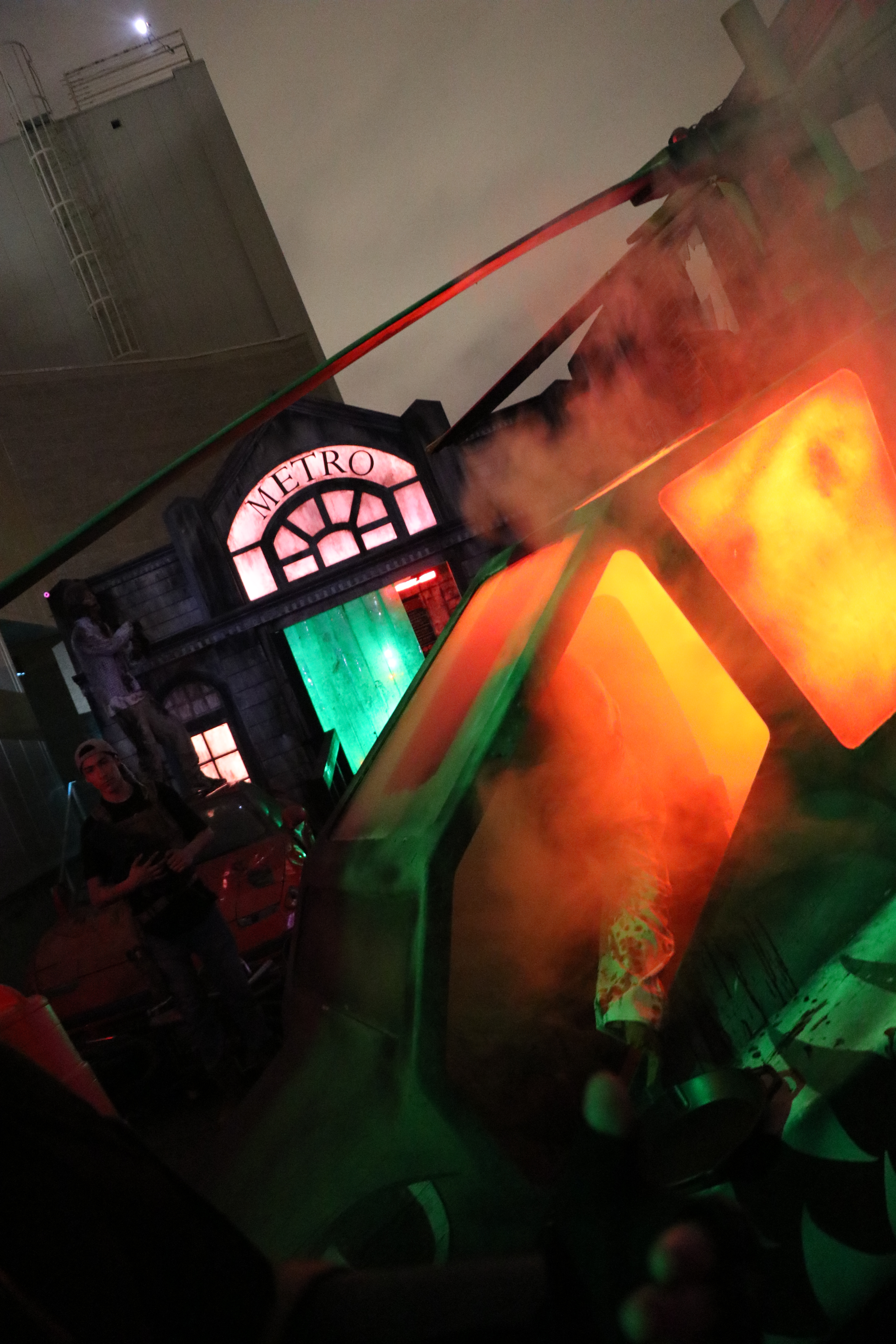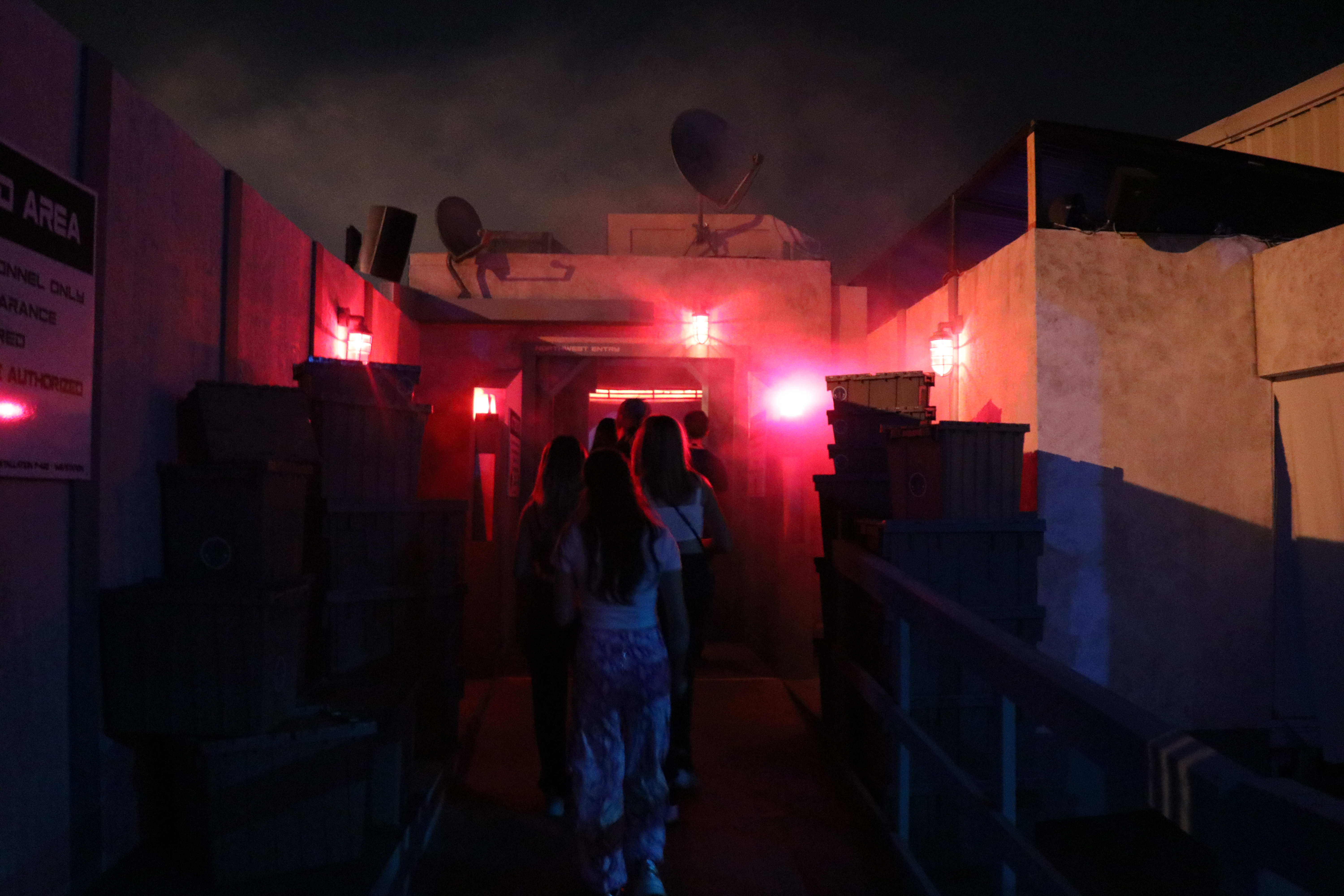 This type of energy really helps sell the whole idea and concept of this maze and we hope that continues through the run. Kudos to all the monsters in this maze for really utilizing every single inch of this maze to help extenuate scares. Unlike some mazes that can get away with lack of scare actors, this one really relies on it a lot. And we are happy to say the cast is outstanding. Along with its cast, the lighting design helps tremendously in creating a sense of urgency and chaos. One sad note is how the end monster was removed and replaced with an animatronic. This was one of our favorite parts from last year and we were saddened to see it go.