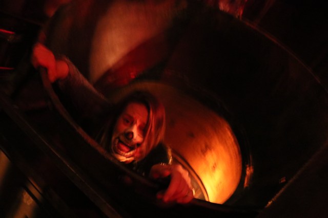 Pumpkin Eater is back again and ready to torment you! We absolutely love Pumpkin Eater (designed by Daniel Miller) because of its dark take on a well known nursery rhyme. Once again, the sound design and set design are outstanding from beginning to end. Throughout the maze, you can hear what sounds like the stretching and crunching of vines. This noise is very unsettling and really puts us on edge and susceptible to the scares around each and every corner. Although we noticed a couple changes, we would love to see some major changes to this mazes ending. We love the concept of being thrown into an oven in all, we just find it a bit confusing visually.