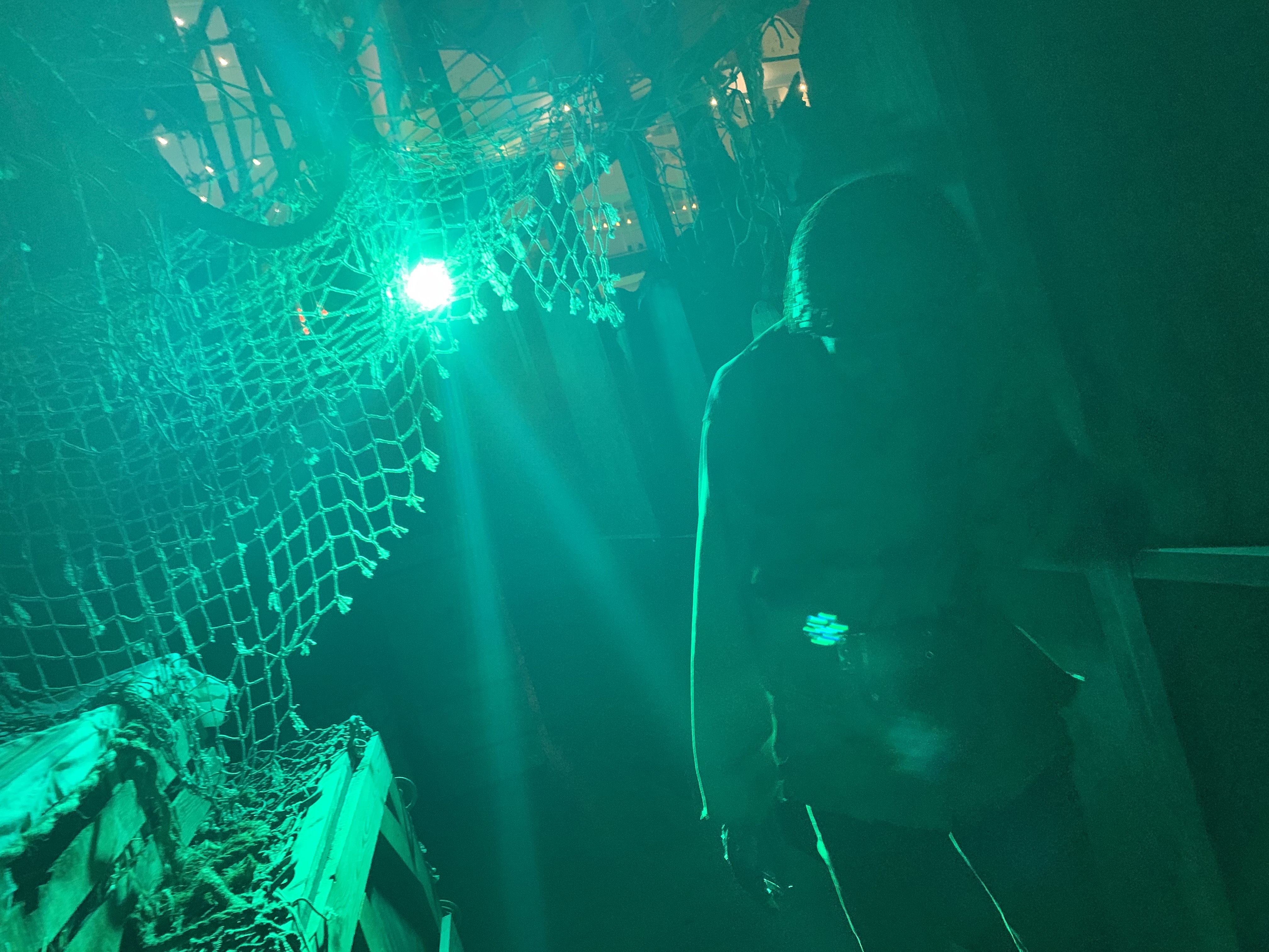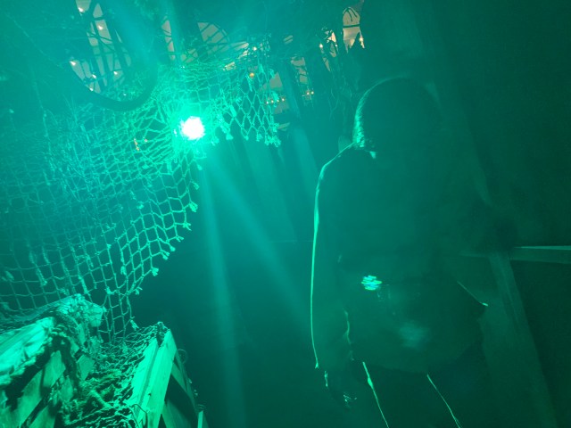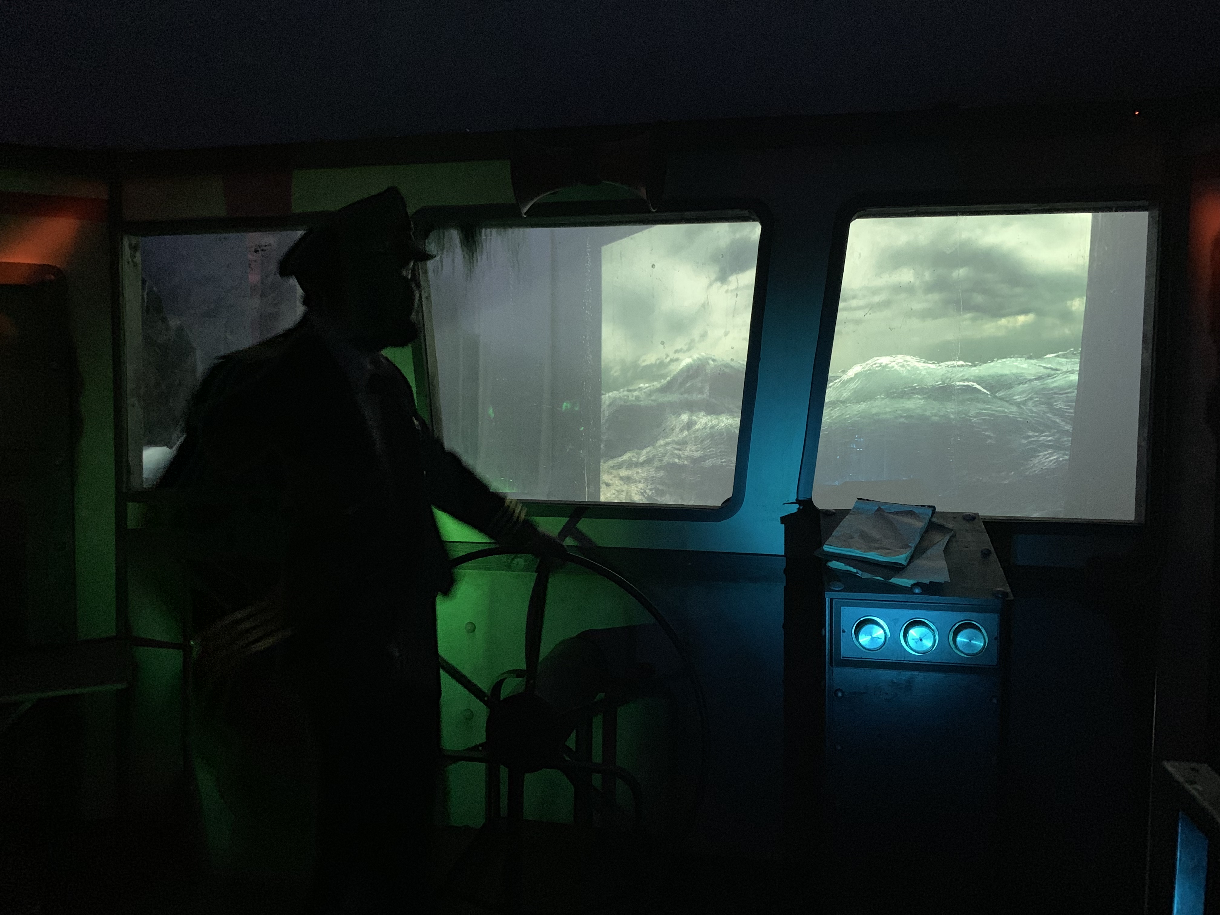 One of the effects used in the maze to make it feel as though you’re on a ship is a room that actually bounces back and forth. When you look out the windows of the room, you see a large projection of a massive wave coming straight for you. Although not perfect, it really puts you in the right mindset for the rest of the maze and makes you feel that chaos.
