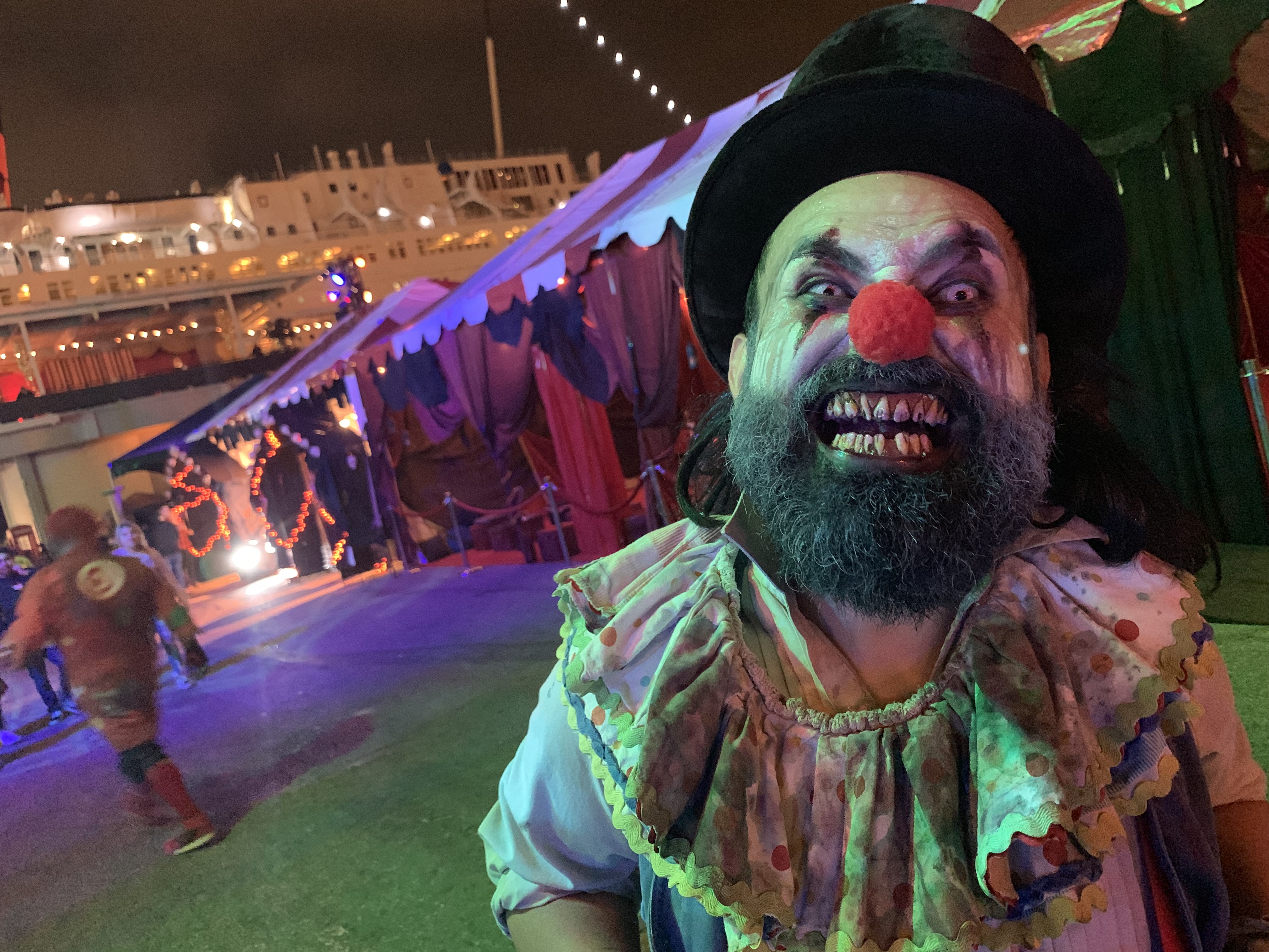 The SoCal landscape is filled with competition in the haunted attraction world. Everywhere you look, each theme park has some type of haunted attraction, and there’s even independent haunts! Each one trying to leave their mark and show what makes them unique. The Queen Mary’s Dark Harbor doesn’t need to try too hard since its location is one of the most haunted places in the world! You heard that correctly, Time Magazine named The Queen Mary as one of the Top 10 MOST Haunted Locations in the world! The once luxury cruise liner has seen its fair share of death and life throughout the years and it clearly made an indelible mark upon the ship. Now it sits in Long Beach as a hotel where people get to spend the night and hope (or pray) that something doesn’t occur in their room at night. If you’re as impatient as me, you’ll look to their incredible haunt, Dark Harbor for a quick fix in scares. We absolutely adore Dark Harbor and love it even more that they build upon the ships history to help mold Dark Harbors story. No other haunt can claim that! Real ghosts inspiring their monsters!