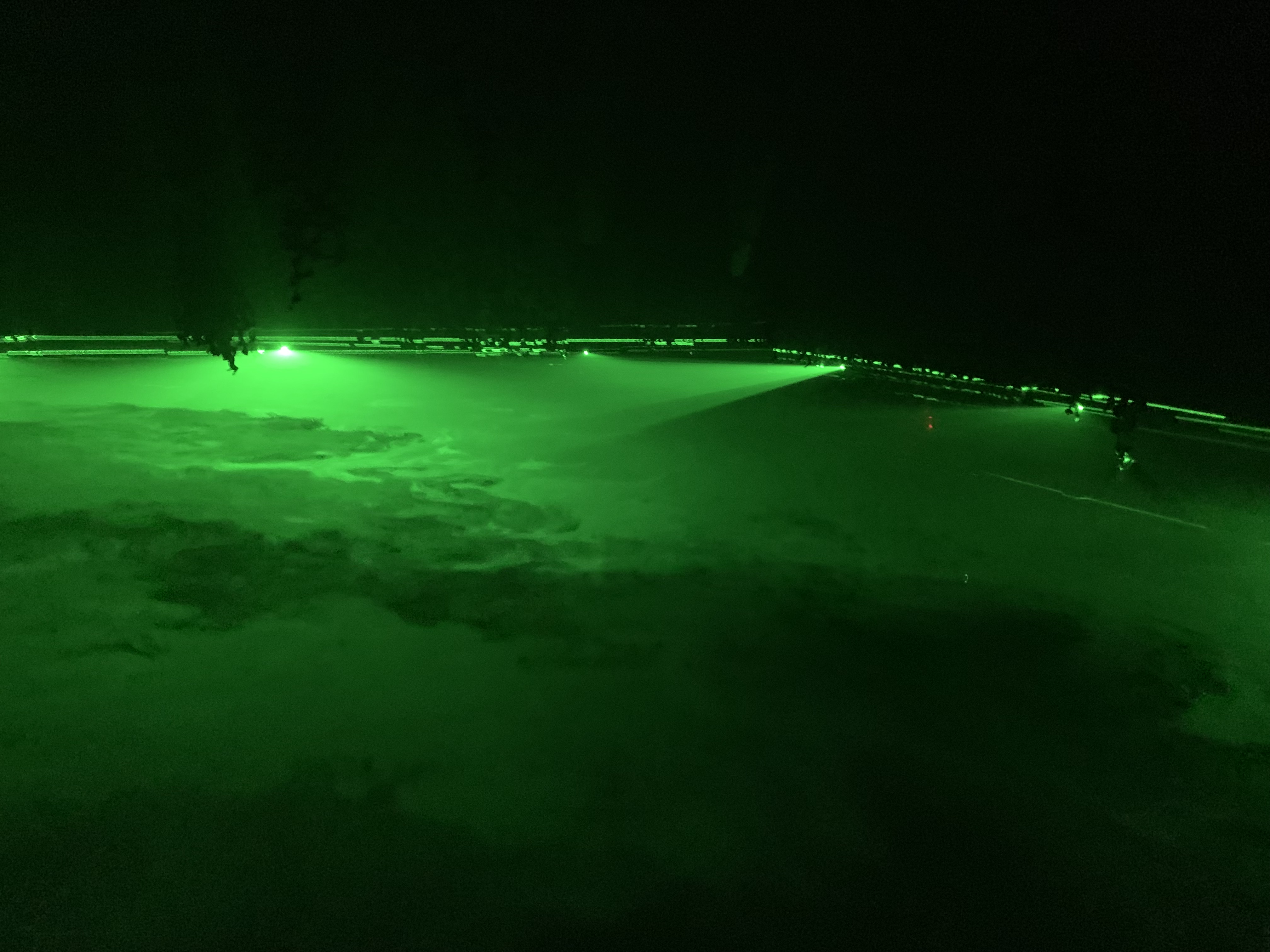 Intrepid really builds a level of suspense and a feeling of uneasiness that no other maze does at Dark Harbor. It also has multiple different tones from scene to scene which we really enjoy. At the beginning, things seem a bit lighter while we were going through outdoor sequences, but as soon as we got inside it got much much darker in tone. Inside, there is an incredible scene that is truly terrifying. You get to walk into a room thats filled with fog from your waist down and a green laser, almost acting as the top of the fog. The monsters are lurking down below, waiting for the right moment to jump for the perfect scare.