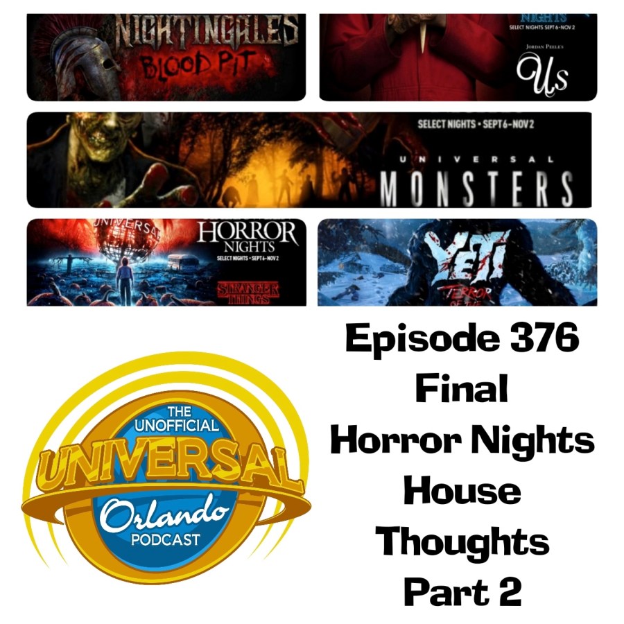 On this episode we give our thoughts on the second 5 houses of Horror Nights 29 and we count down our individual top 10 lists.