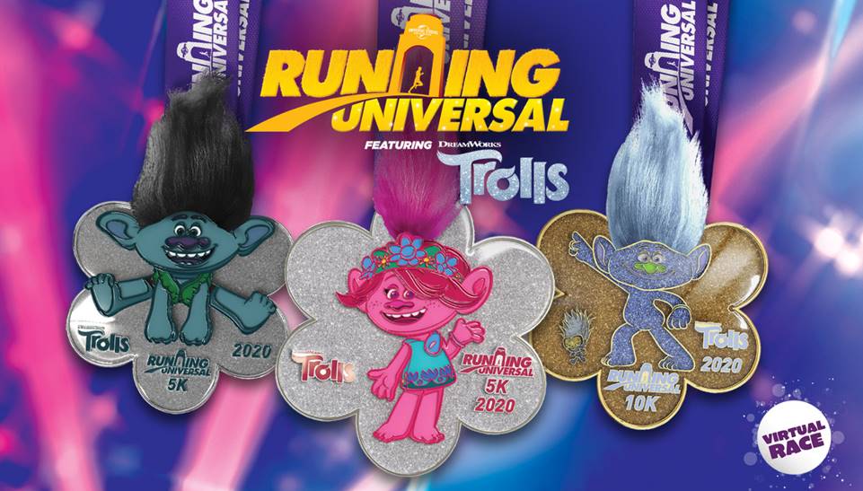 Guests can choose between several different running packages to commemorate their own hair-raising Trolls tribute to the popular “Running Universal” series. The Standard 5K or 10K package will include one collectible medal, a themed drawstring backpack, a collectible Trolls pin and a downloadable bib and certificate. The VIP 5K or 10K package will include the Standard package items plus a Running Universal reusable water bottle. Young racers participating in the Kids’ 1K will receive an exclusive medallion, a themed drawstring backpack and a collectible Trolls pin along with a downloadable bib and certificate. The ultimate Trolls fan can select the Trolls Party Package, which includes all three medals along with the Standard Package items and reusable water bottle.