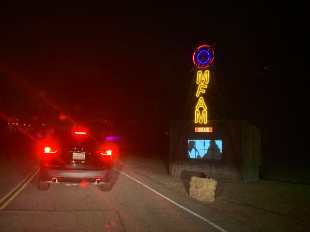 Once at the end of the path, you’re directed to park in socially distant parking spaces. Once parked, you’ll want to leave your car on so you can switch your radio to the proper stations so you can have in car audio from the show. Throughout the event, you are directed to stay in your car, but you’re allowed to roll your windows down with the caveat that you keep your mask on at all times.