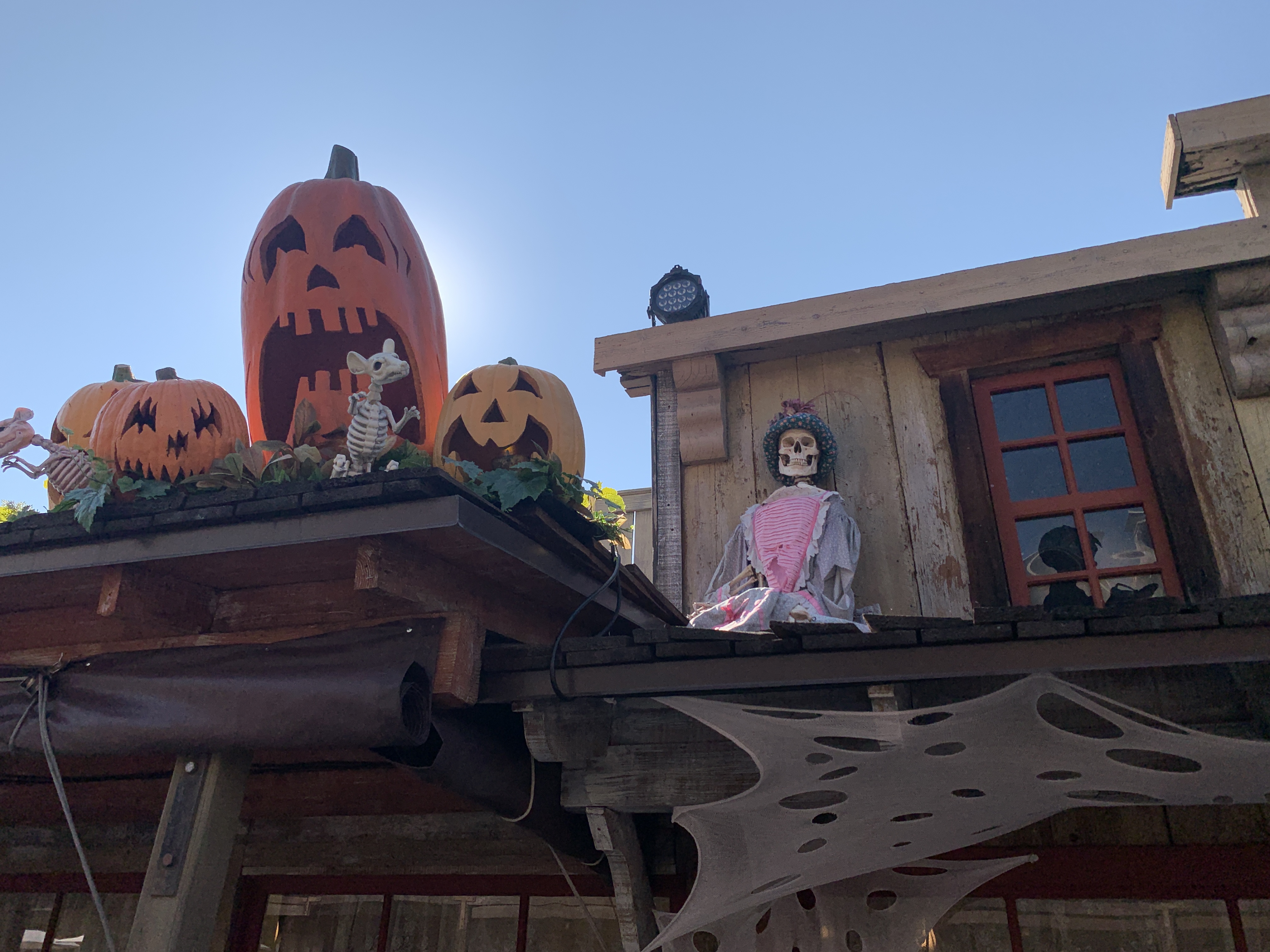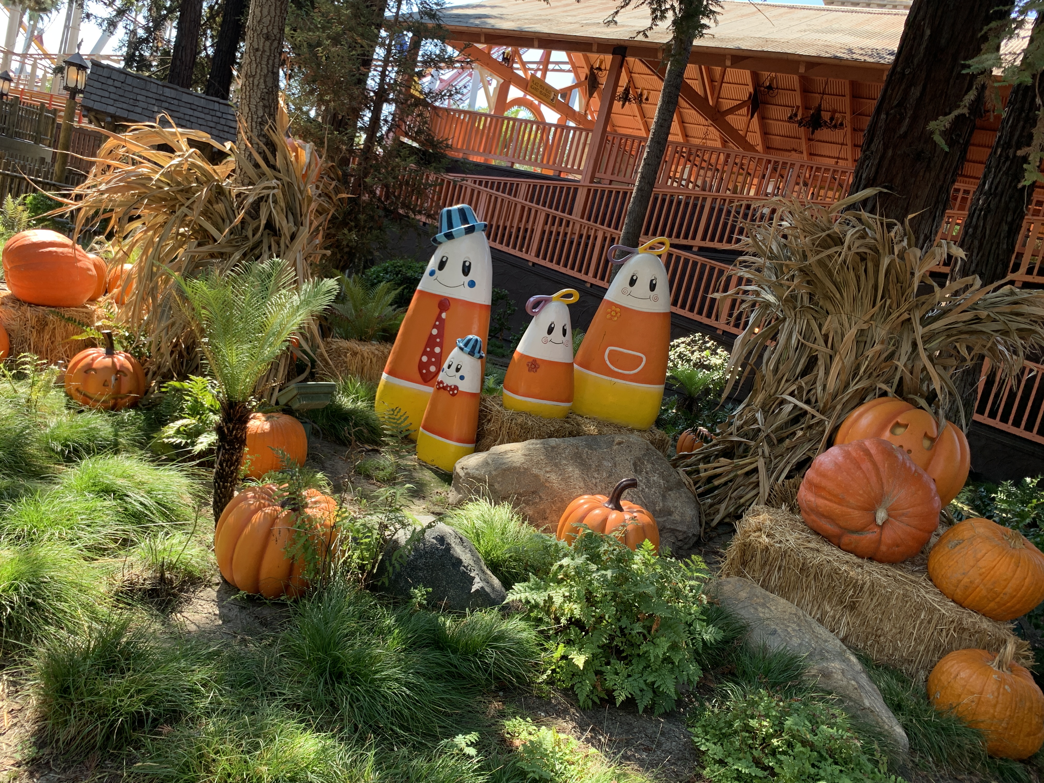 Aside from Characters, the park is completely decorated from head to toe in Halloween decorations! The beautiful colors of orange and black can be found through the park whether it be the orange on a pumpkin or the blackness of the cracks on a skeleton. In fact, if you’re a Haunt Nerd (Knott’ Scary Farm Nerd) like us, you’ll have fun spotting decorations throughout the park that have been used in previous years of Scary Farm. Actually in Camp Snoopy, you’ll find A LOT of those decorations. In Fact, you’ll actually find ALL of Foresaken Lake!