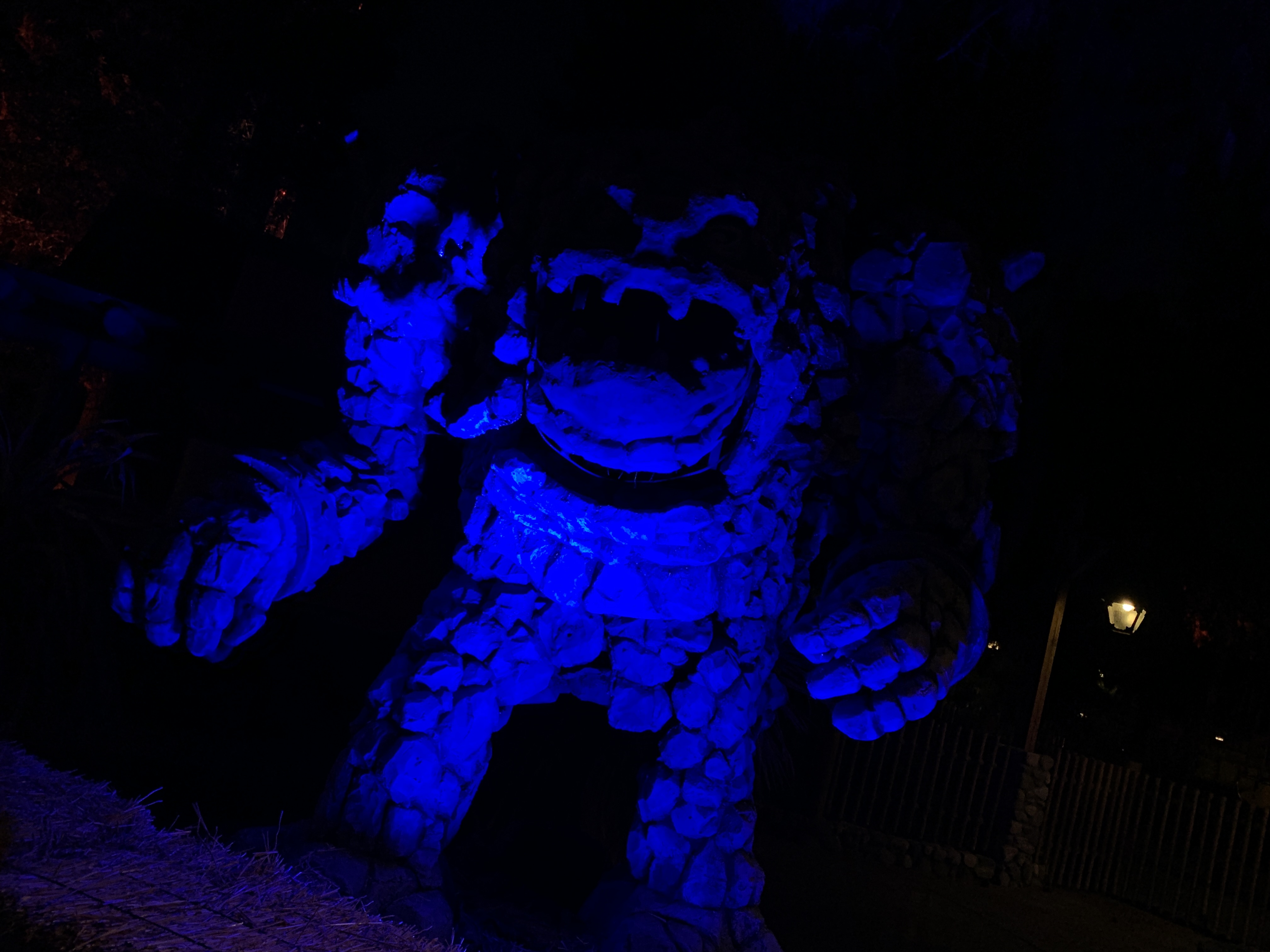 We also went back through the Treat Trail at night to get a sense of what it would be like with thematic lighting and fog. Needless to say, it did not disappoint!