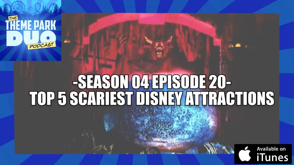 On this weeks episode of the Theme Park Duo Podcast, The Duo talk about their TOP 5 Scariest Disney Attraction list! What attractions has Disney created that is the scariest of all time? Listen and find out! We also talk theme park news with Holiday in the Park Drive-Thru Experience at Six Flags Magic Mountain and Taste of Merry Farm at Knott’s Berry Farm!