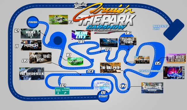 Last weekend, we had the opportunity to check out Six Flags Magic Mountain’s latest drive through event, Cruisin’ the Park Car Show! Now, I know what you’re thinking. What does SFMM have to do with cars? Well, in 2019 SFMM teamed up with West Coast Customs to build West Coast Racers! A launching racing coaster that puts you in the drivers seat. With such great response to the attraction and team up, it’s no wonder they did it again. Although we do understand the confusion.