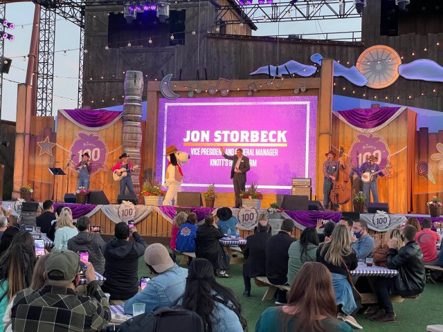 With a wonderful musical introduction by Crazy Kirk and the Hillbillies; Jon Storbeck, the Vice President and General Manager of Knott’s Berry Farm took the stage with Snoopy to introduce the exciting additions to the park for the 100th Anniversary. This includes Knott’s Bear-y Tales: Return to the Fair, the return of Whittles, changing the theater name from The Charles M. Shultz Theater to the Walter Knott Theater, and the return of Knott’s Summer Nights.