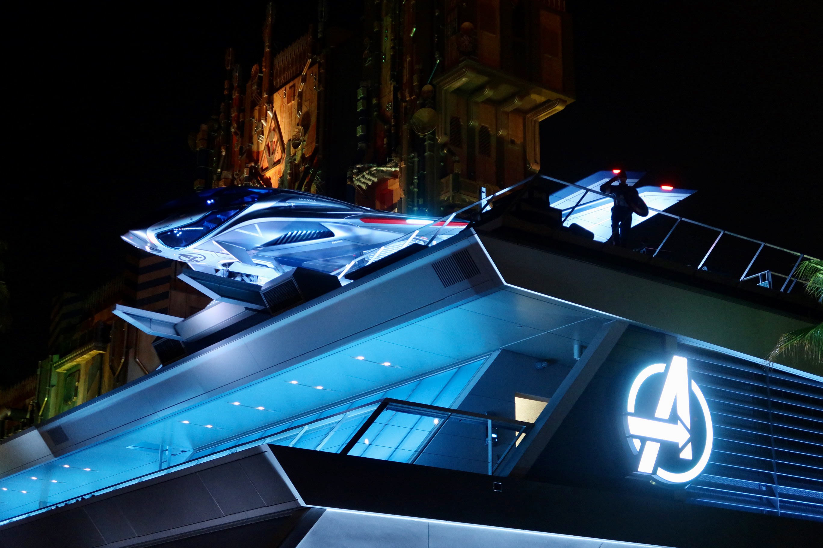 But back on track, we entered the gates of the Avengers Campus! On the left Mr. Stark has a huge building in which Spider-Man tries out his new spider suit and then repels down the building to greet his fans. Since Spider-Man had been testing his suit all day, he was not going to be joining the Woody Show fans. We ventured around to the front of the Web Slingers attraction, which requires a boarding group reservation to ride. However, tonight this would be different. All of the guests in attendance were NOT going to need a reservation to ride, but were going to be able to just hop in the stand by line and wait to ride! What a treat! This was definitely on the list for our adventures.