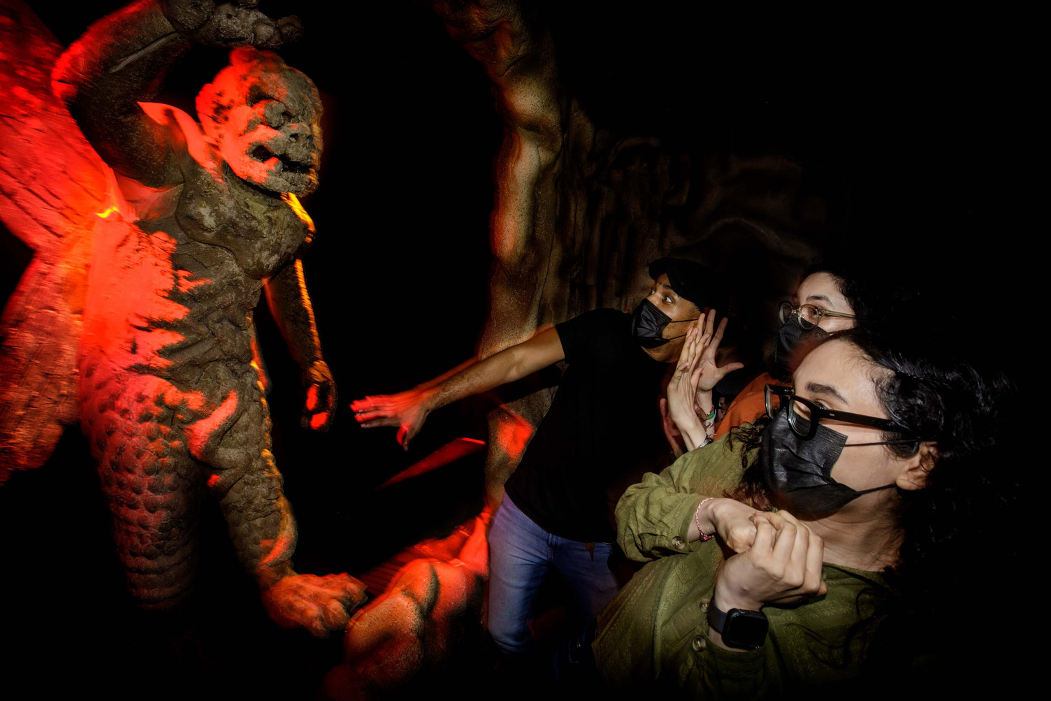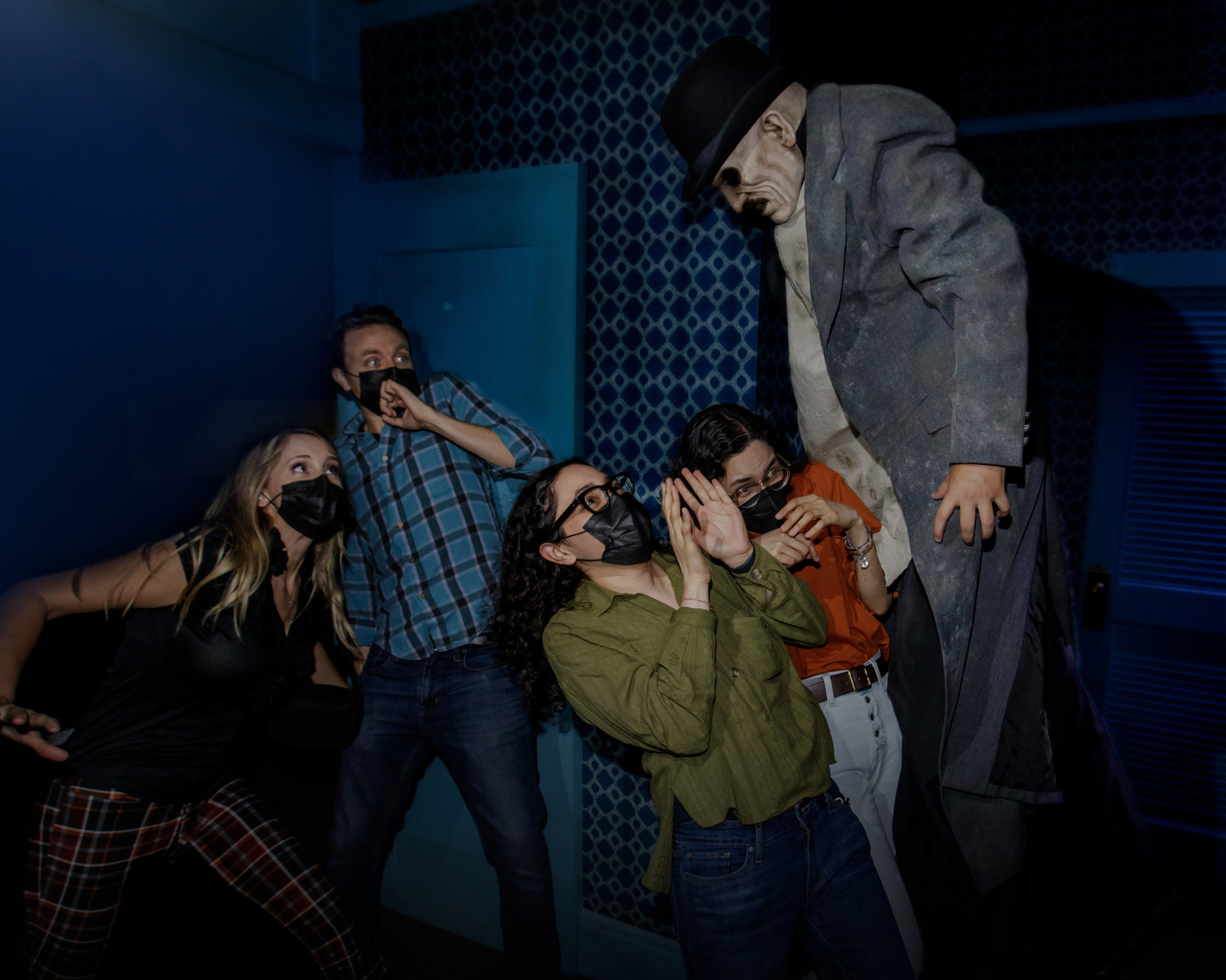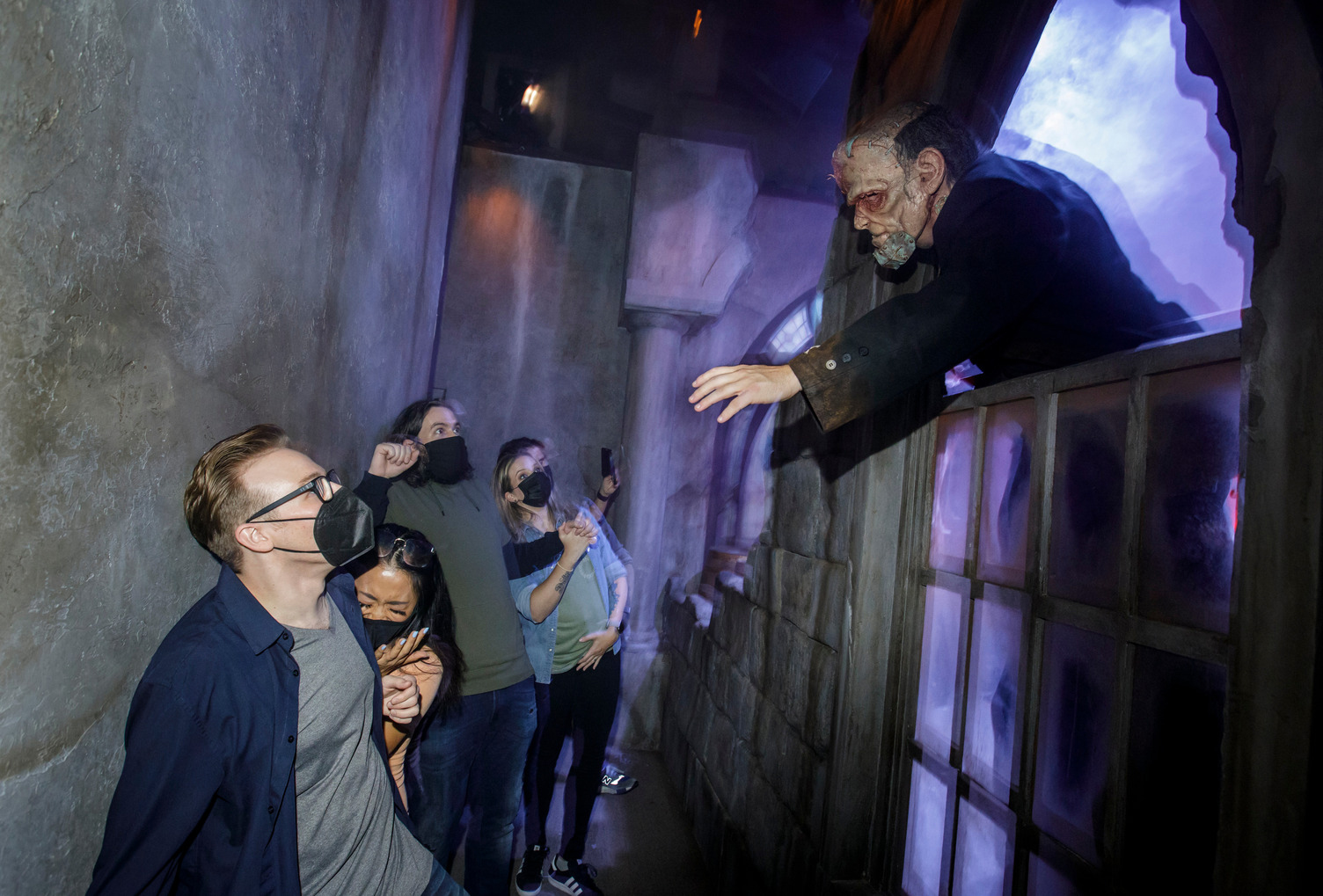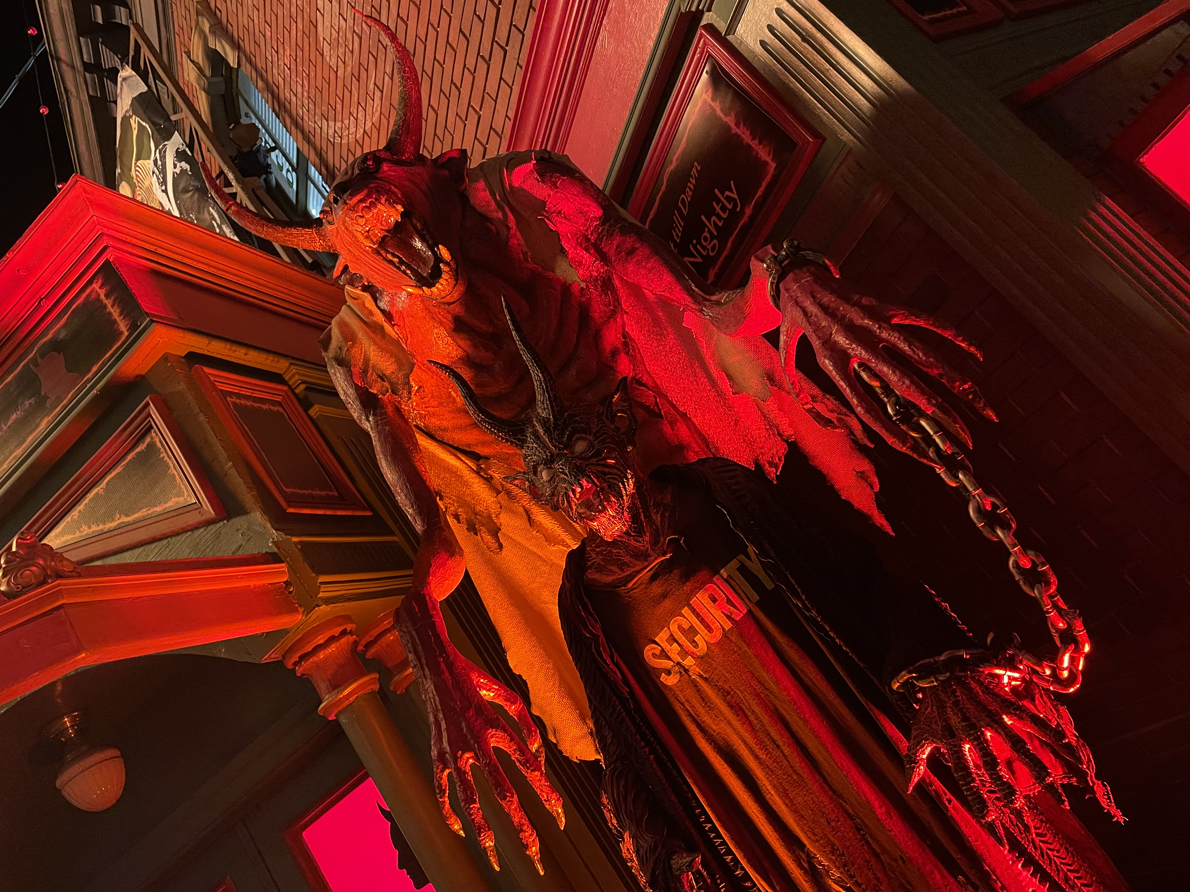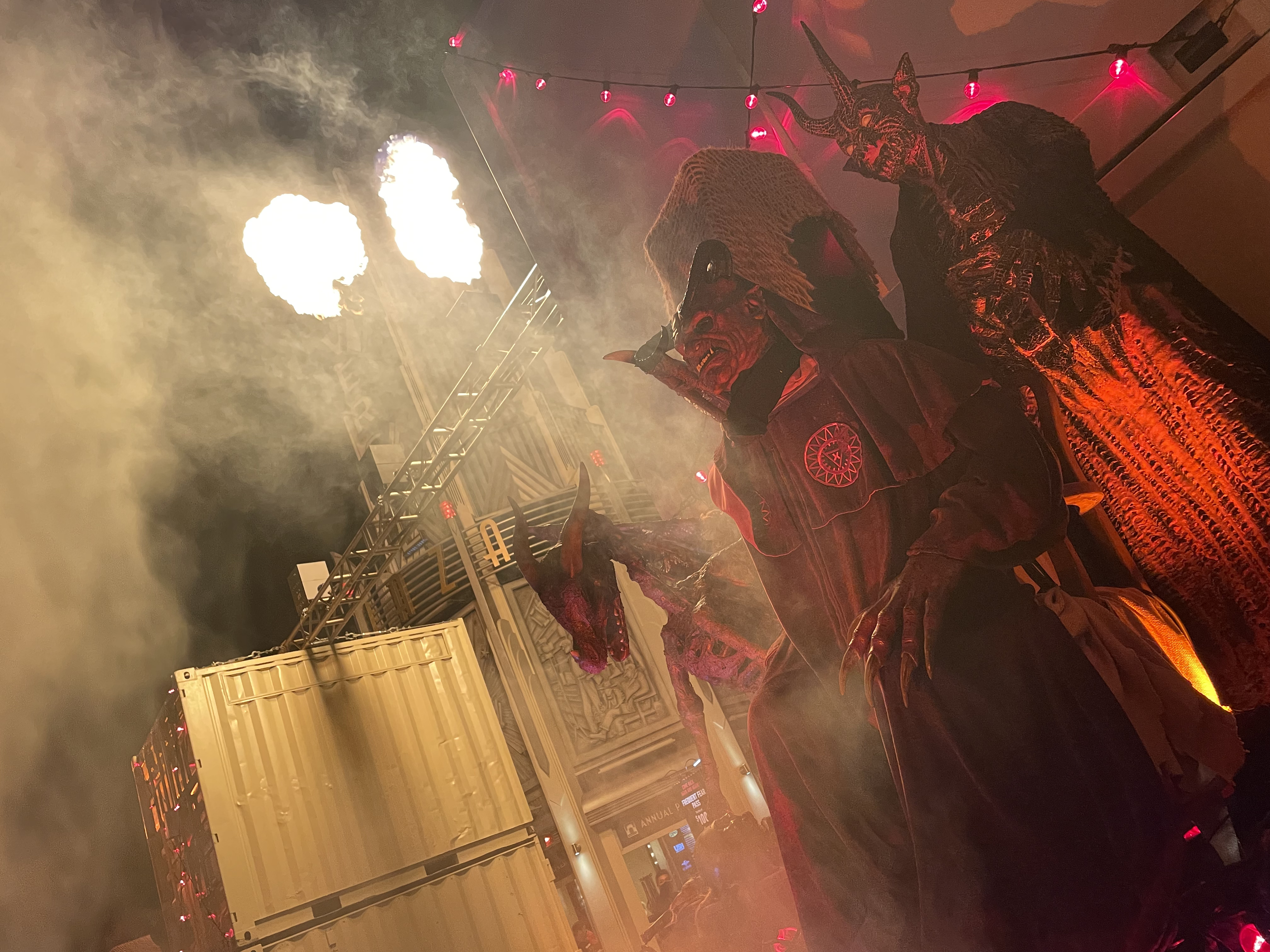 One addition that I believe really made an impact were plexiglass barriers for some of the scares. I’m almost certain these are present because of COVID guidelines. But for us, it really added another element. You couldn’t see the scare coming in a dark lit hallway and the noise the plexiglass made when being pounded on was incredibly unnerving. The first time I heard it, the hair on the back of my neck stood up!